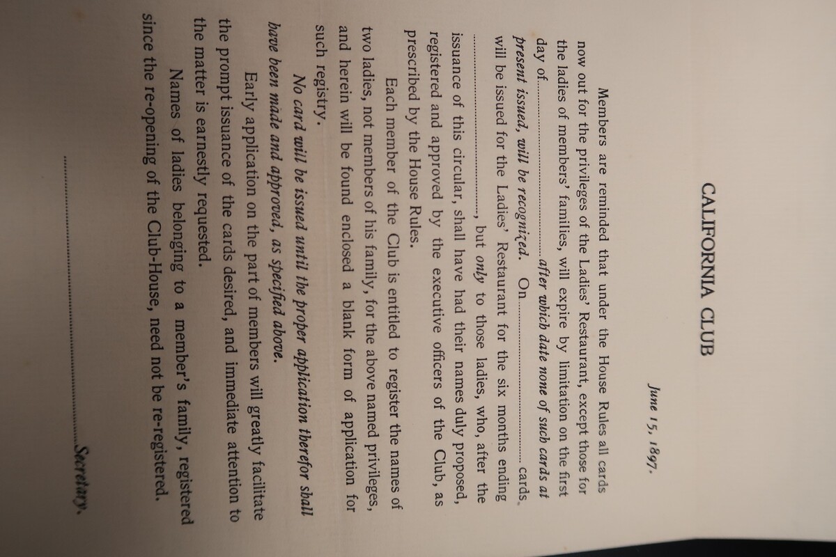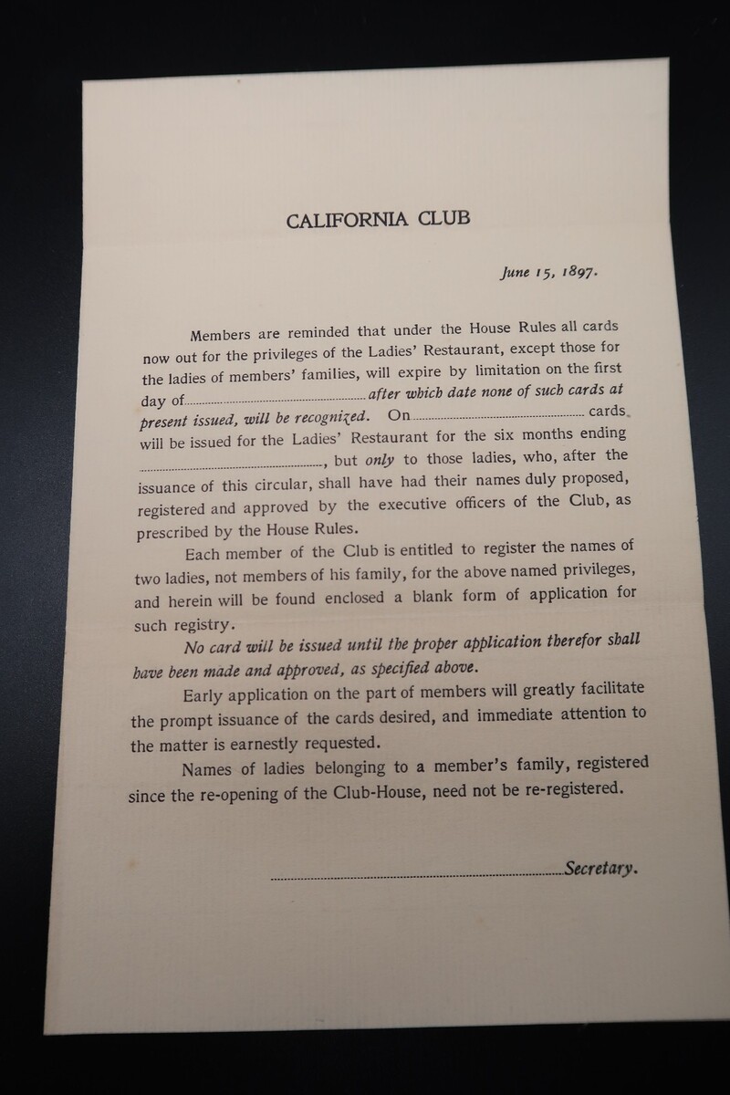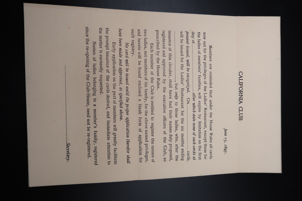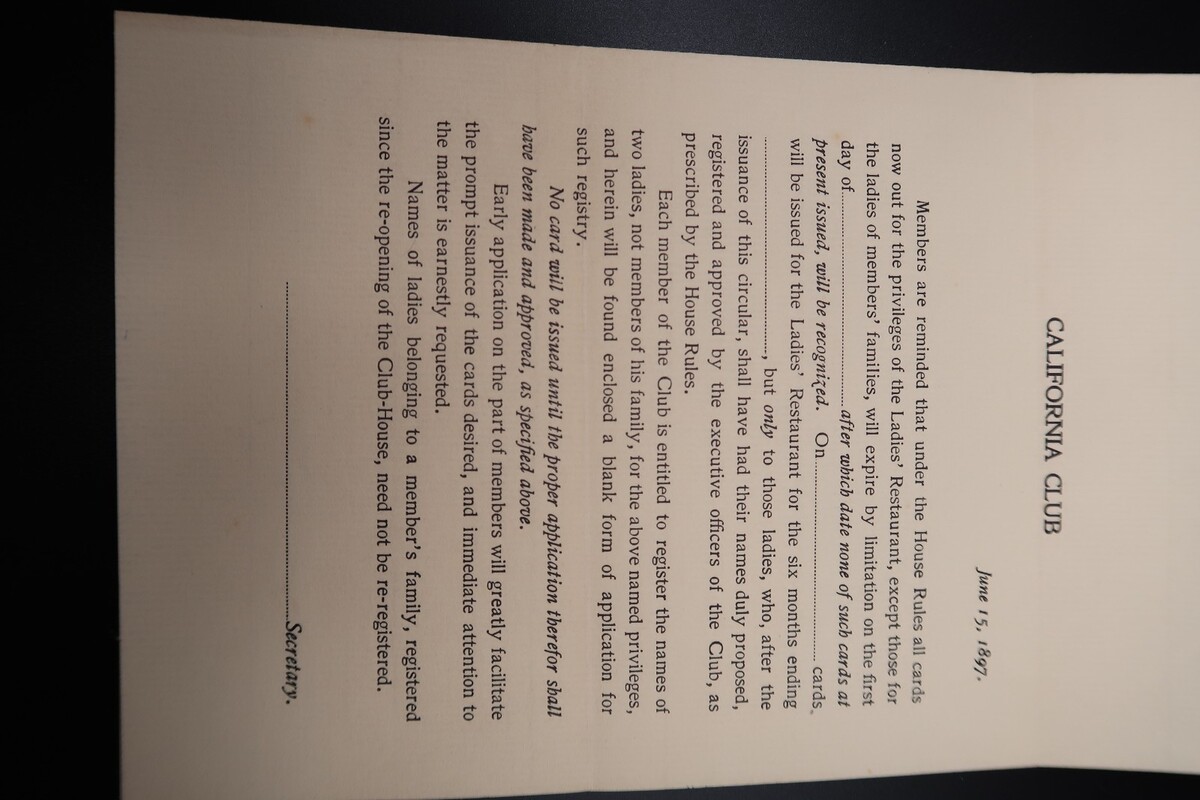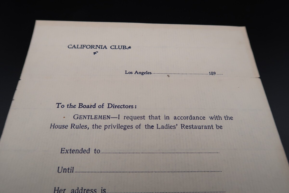 Antique California Club Los Angeles 1897 Letter Ladies Restaurant Permission HTF