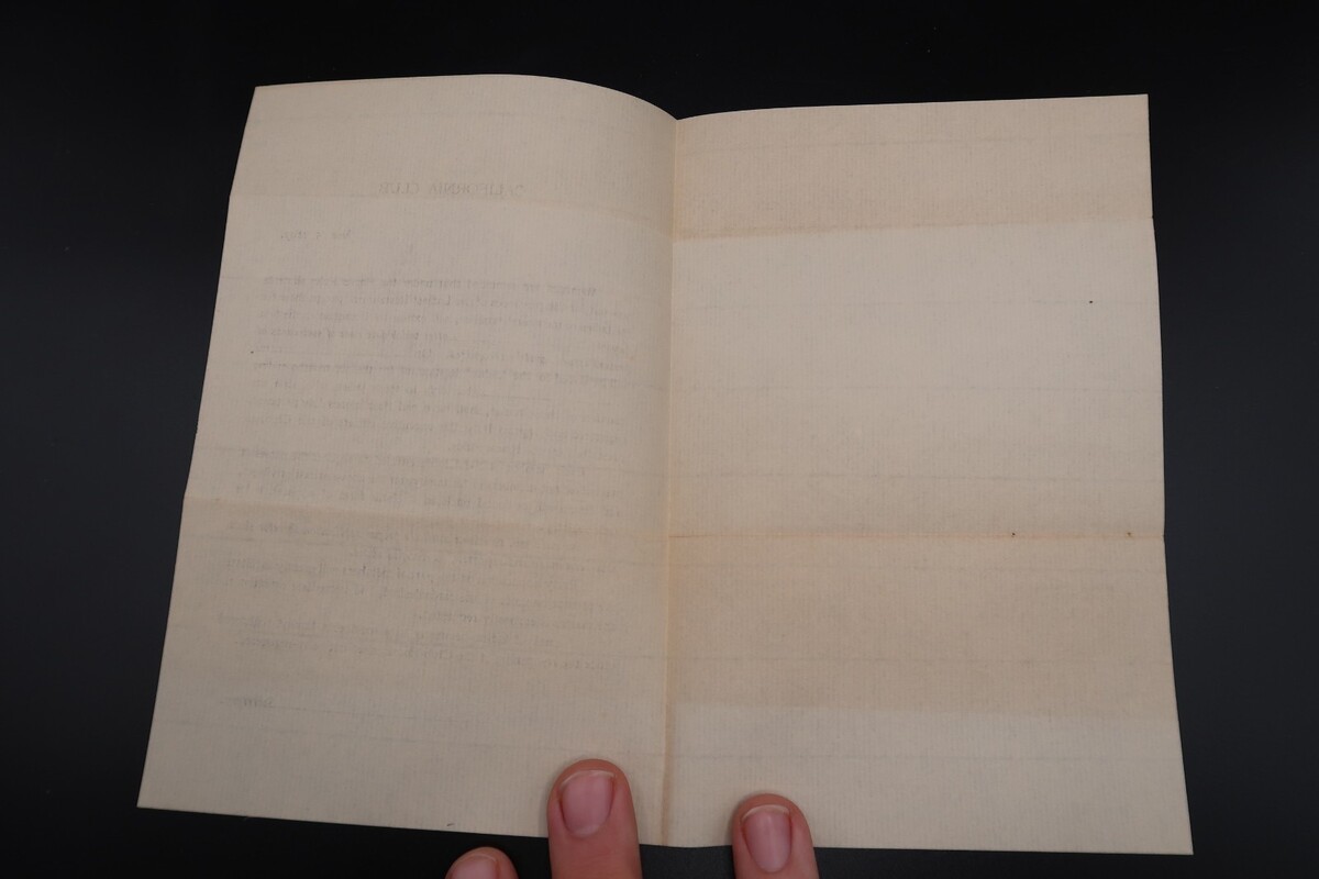 A rare and beautiful antique California Club Letter and permission slip for two non-member women, from the husband/member of the club. Dated June 15th 1897, Los Angeles CA. the club was founded in 1888. Some discoloration consistent with age and being exposed to light. Please carefully examine all pictures before purchasing. The pictures are an important part of the description, and usually include important measurements. Items are in good pre-owned condition unless otherwise noted.