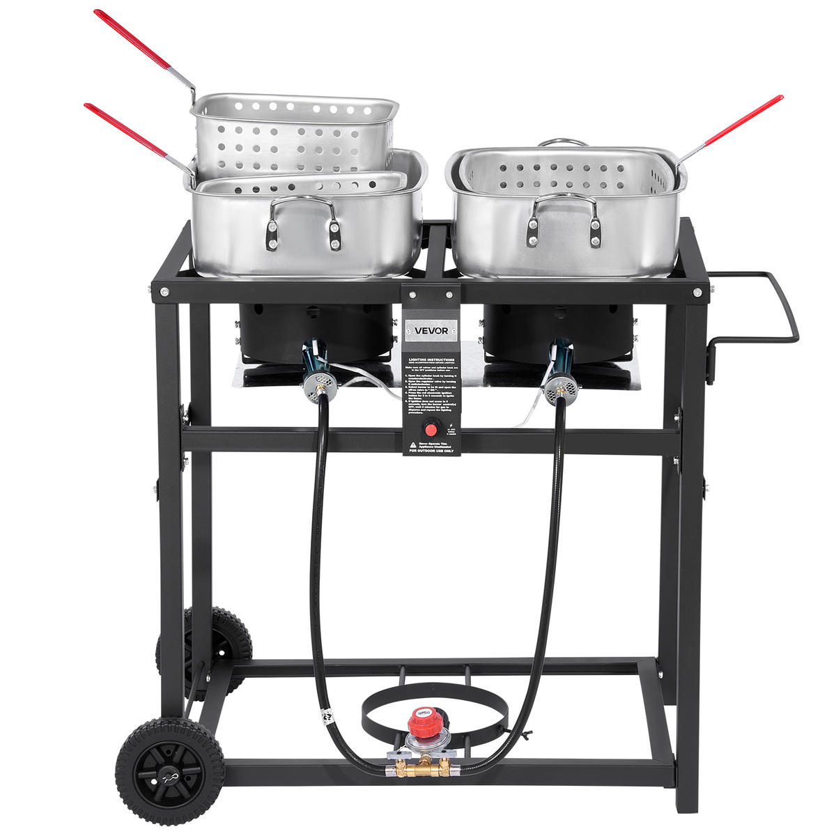 VEVOR Propane 18QT×2 Dual-Tank Fryer 3 Basket 40000 BTU Wheeled Frying Cart