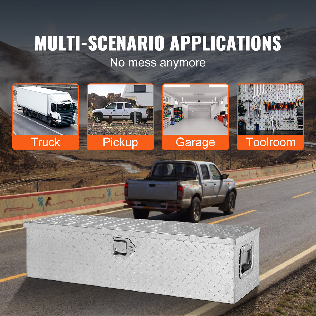 Last A Lifetime: VEVOR truck tool box is constructed from lightweight yet durable aluminum alloy, featuring a diamond tread pattern and double-sided power coating process. This design helps to prevent rust, corrosion, and abrasion, ensuring long-lasting use for several years. Additionally, the tool box is equipped with upgraded corners to secure the packaging and prevent any damage or deformation during transportation.