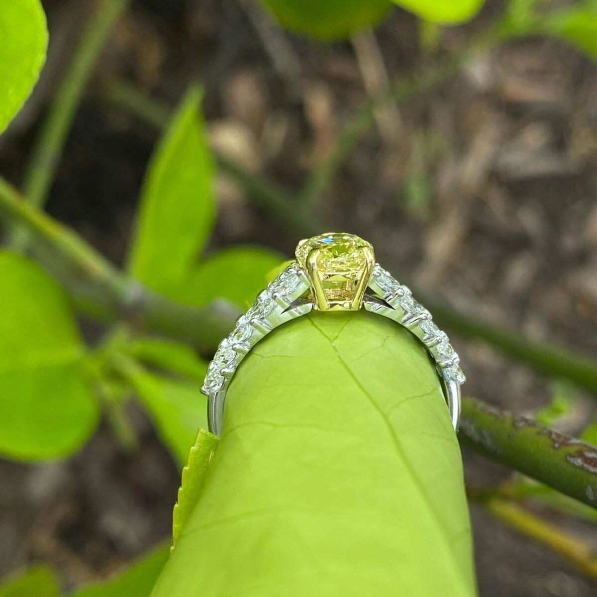 2.40 TCW Igi 1.23Ct Ovale Decorato Intensi Giallo Lab Grown Anello Diamante 14k