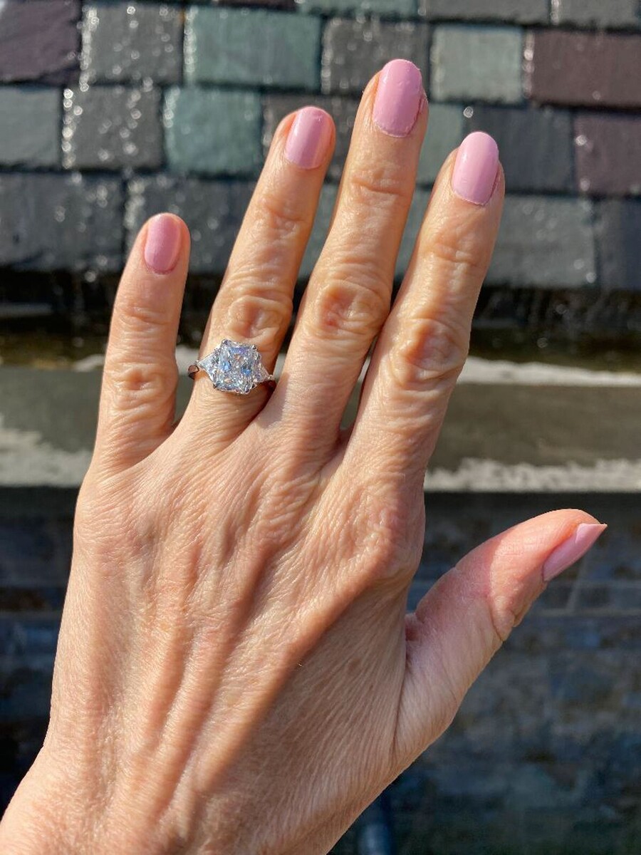 3 Pietra Igi 3.67 Ctw Laboratrio Cresciuta Cuscino Diamante Fidanzamento Anello