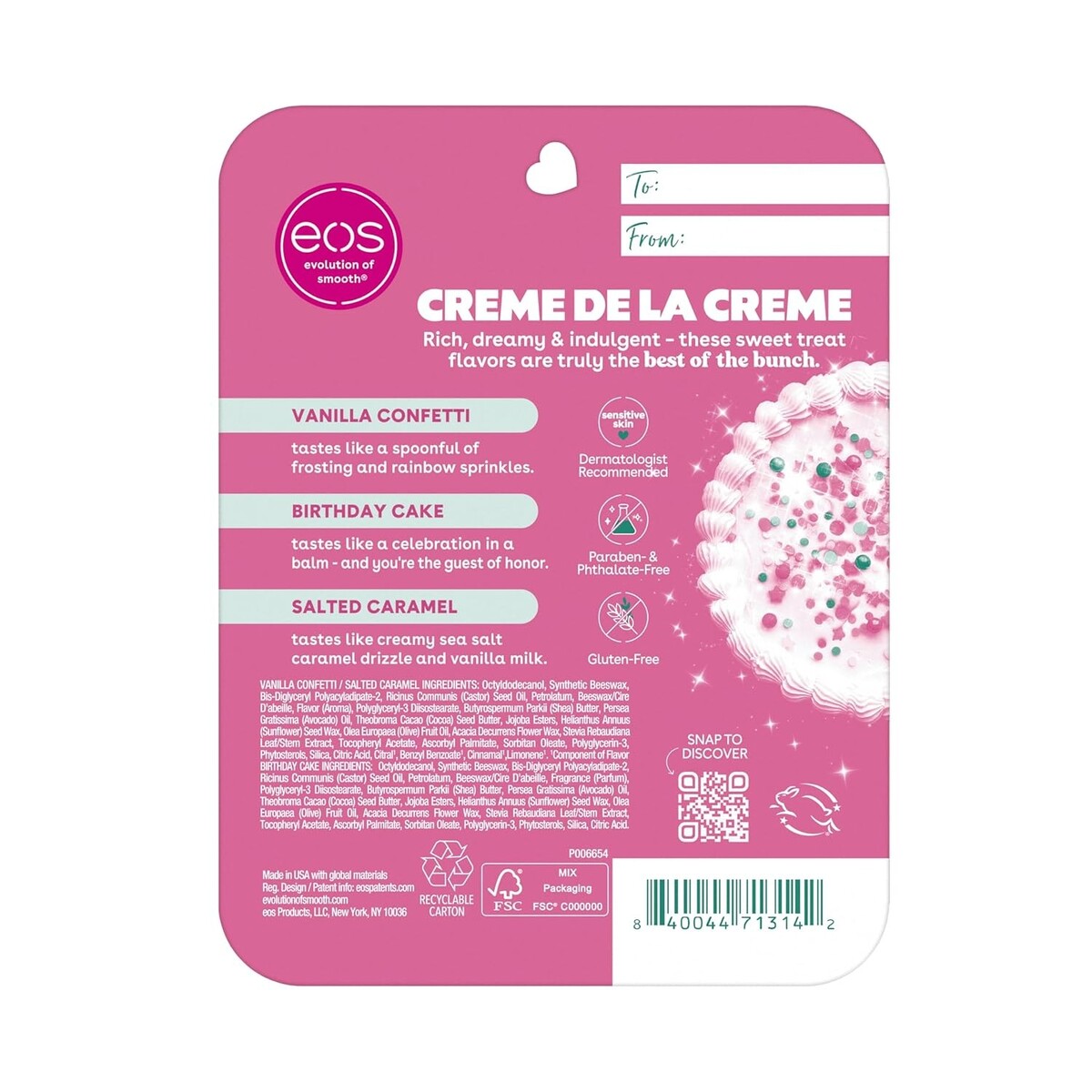 OUR PROMISE: All eos lip balms are paraben, phthalate, gluten, and cruelty-free