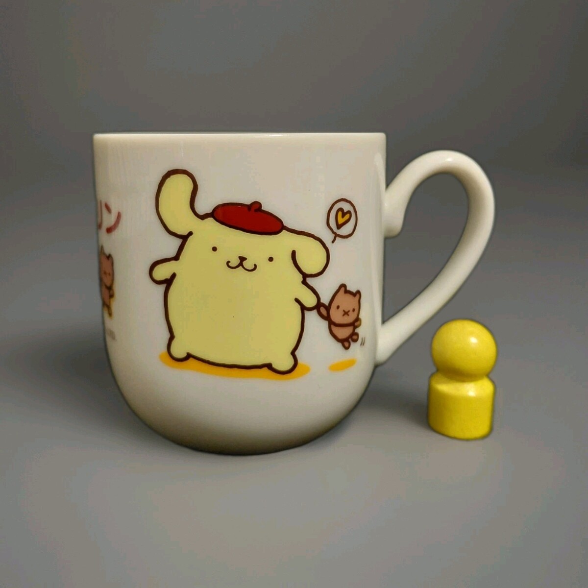 This multicolored ceramic cup features the beloved character Pompompurin and was manufactured in China in the year 2000.