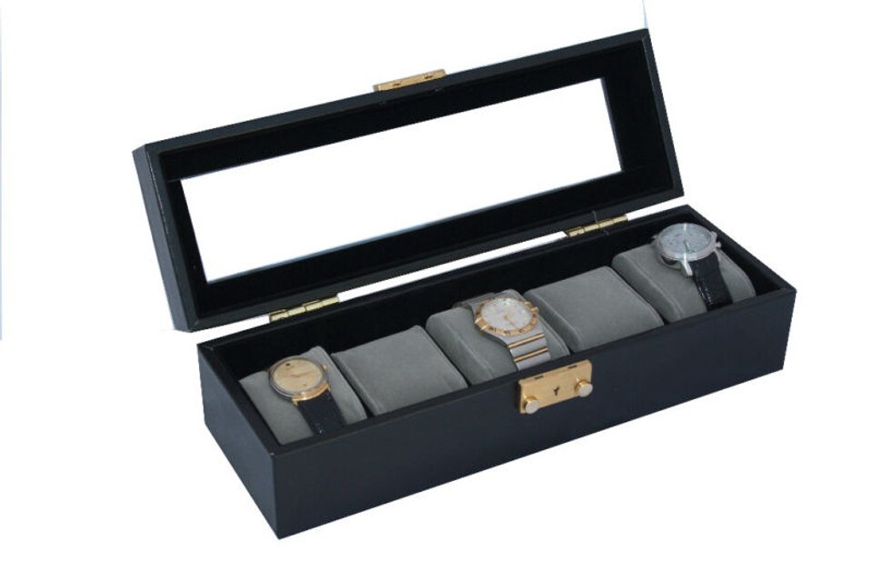 5 WATCH LEATHERETTE STORAGE ORGANIZER BOX DISPLAY CASE