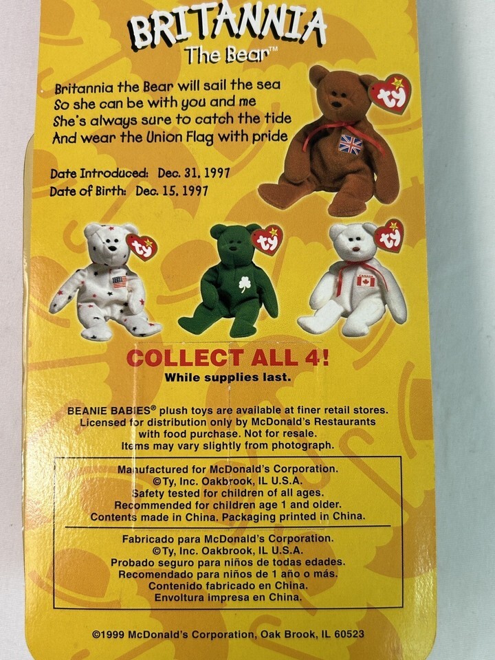 TY BEANIE BABIES MCDONALDS INTERNATIONAL BEARS SET OF 4 NEW IN BOX! ERRORS RARE!