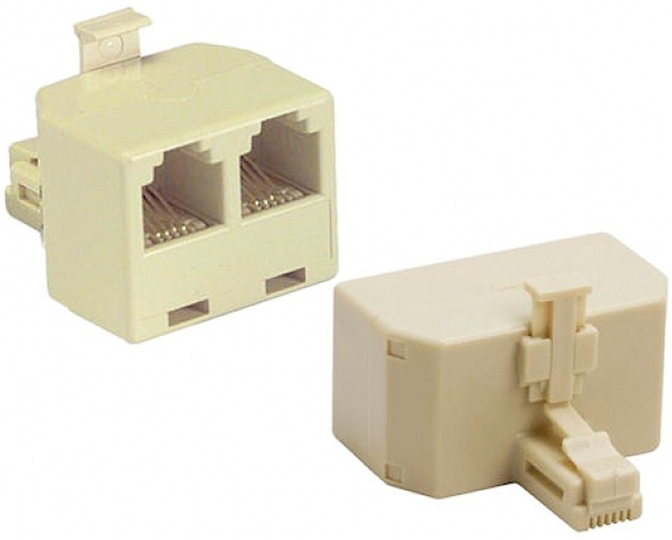 MODULAR 1 MALE TO 2 FEMALE ADAPTER, RJ-11, RJ-14 |