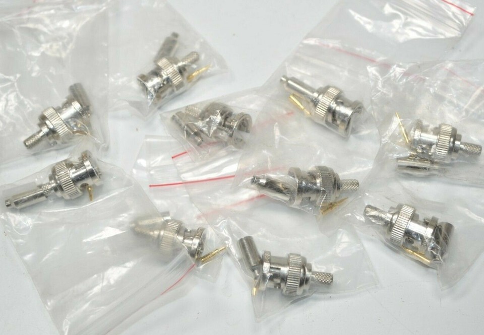 Lot of 10 BOMAR BNC Connector Plug Male Pin 75Ohm In-Line Crimp/Solder 310B205MV