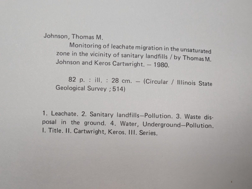 Monitoring of Leachate Migration in the Unsaturated Zone in the |