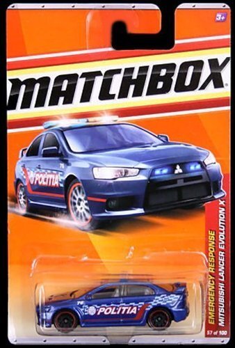 MITSUBISHI LANCER EVOLUTION X Matchbox 2010-2011 Emergency Response Series #9 of 11 BLUE Police Compatible with MITSUBISHI LANCER EVOLUTION X 1:64 Scale Collectible Die Cast Metal Toy Car Model #57 of 100