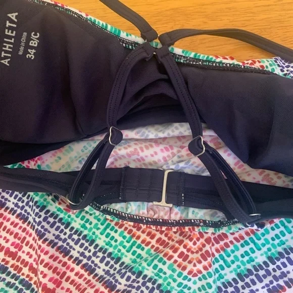 Athleta Moxie Collection Tankini Swim Top Pink Navy Bra Strap UPF 50, Size 34B C