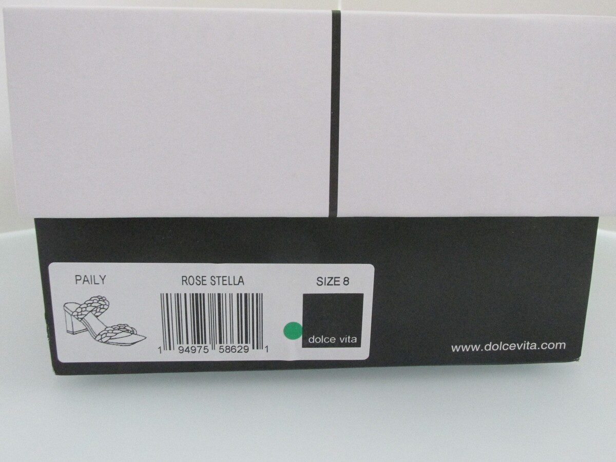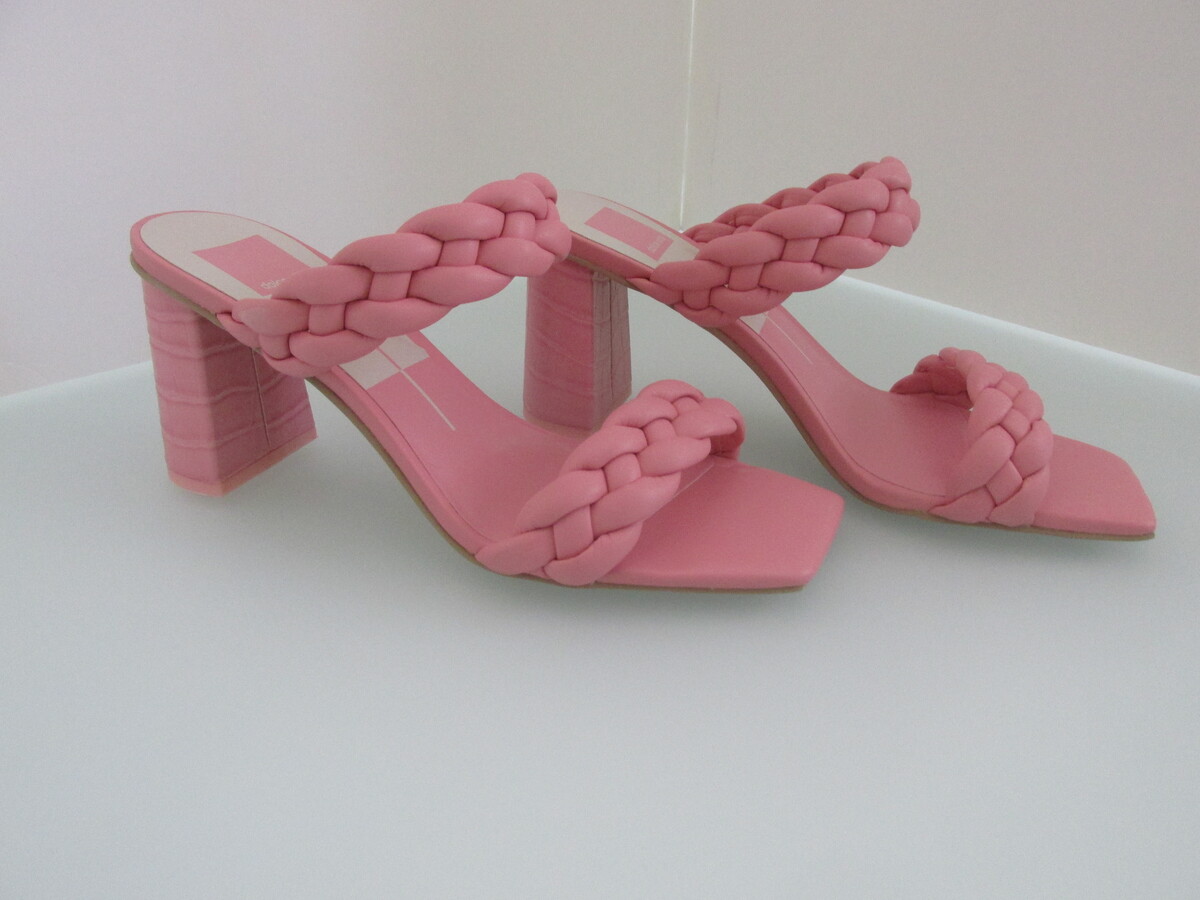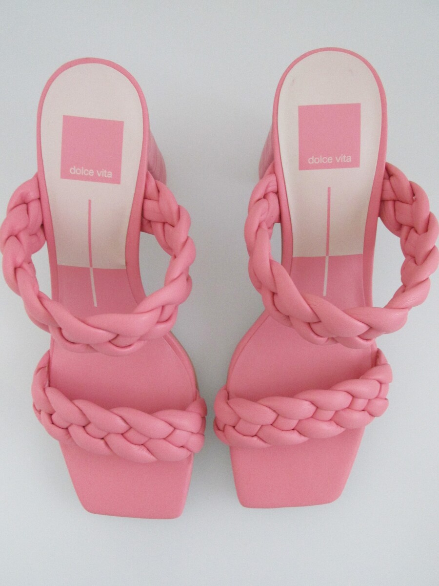 Description: Up for sale is a pair of Dolce Vita "Paily" new women's braided slip-on heels. These square-toe shoes are US size 8 M. They are light pink in color with a 2.75" block heel. They feature a braided top with manmade uppers soles. The shoes come with the original box.