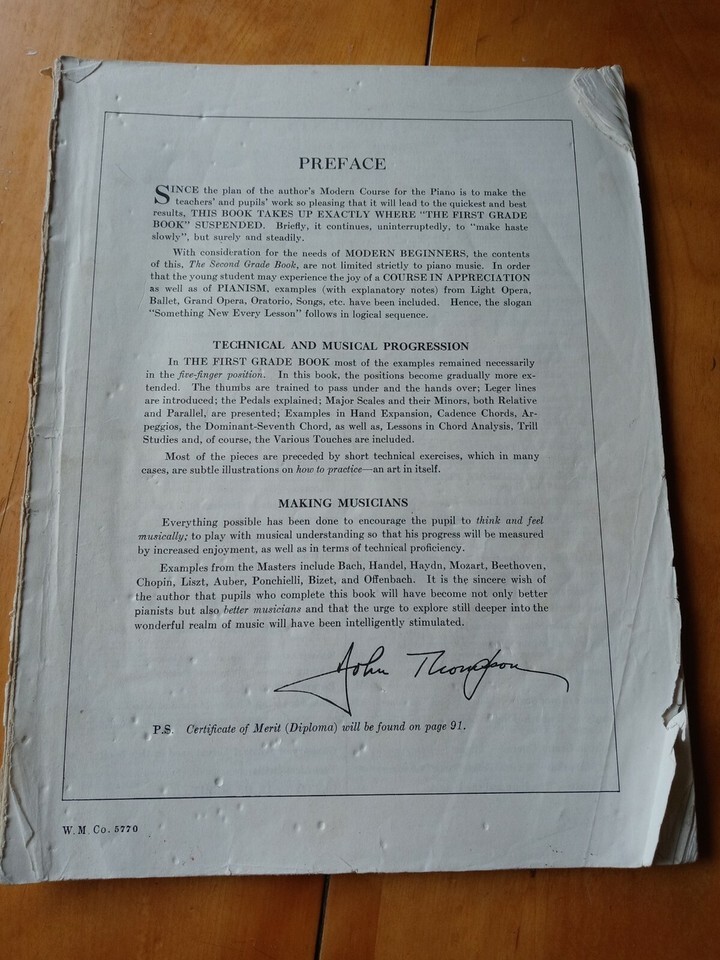 John Thompson's Modern Course for the Piano - Second Grade Book.AUTHENTIC SONG BOOK FROM THE SONG BOOK PUBLISHER COLLECTIBLE - VINTAGE - VERY RARE FAST SHIPPING WITHIN 24 HOURS Packed By Our Award Winning Packaging And Shipping Department Long Time E-commerce Seller For Over 20 Years LIMITED AVAILABILITY Add Our Store To Your favorites list ! The sale is final and please do not ask for refunds, returns, changes or cancelations Condition: Used (This Is A Vintage Old Rare Song Book With Wear,Tears,Creases ect Per Pictures Attached -See All The Enclosed Pictures For The Exact Condition) RARE VINTAGE COLLECTIBLE- SHIPS N 24 HOURS