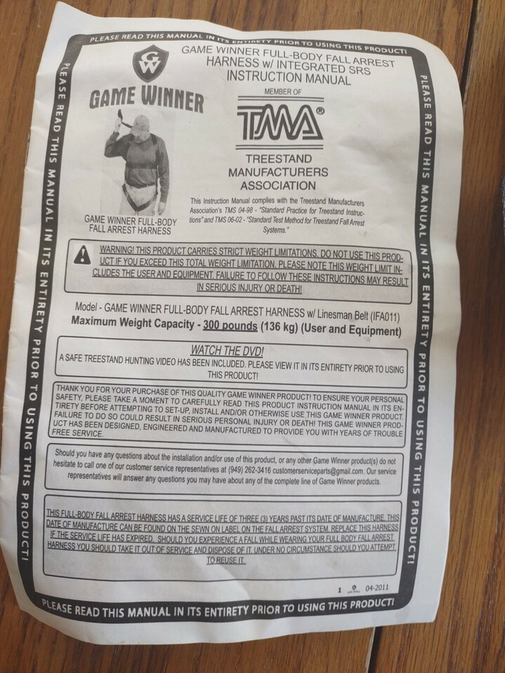 Game Winner Full-Body Fall Arrest Harness + Integrated Suspension Relief Strap. Inventory box number 5749