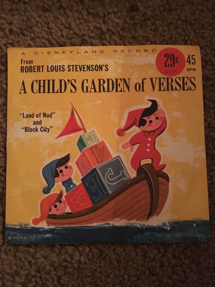 Disneyland Record From Robert Louis Stevenson?s A Child?s Garden of Verses RARE. Vintage find Condition is Used. Shipped with USPS Media Mail.