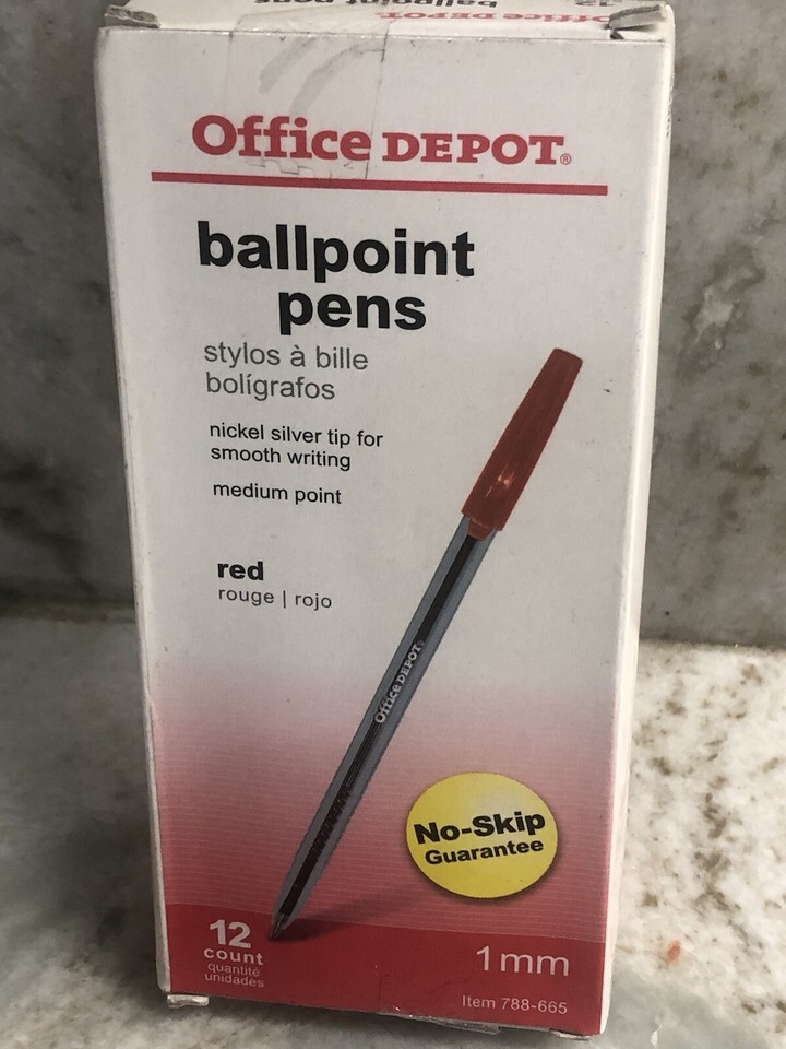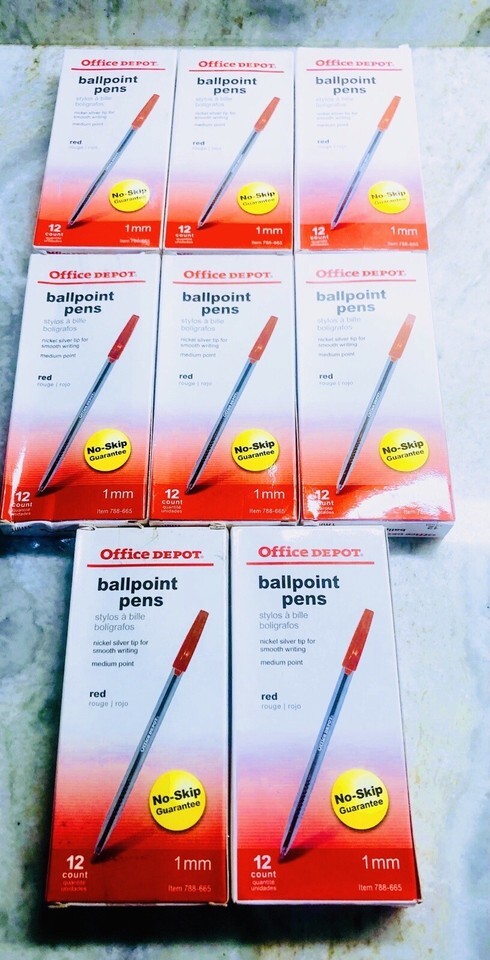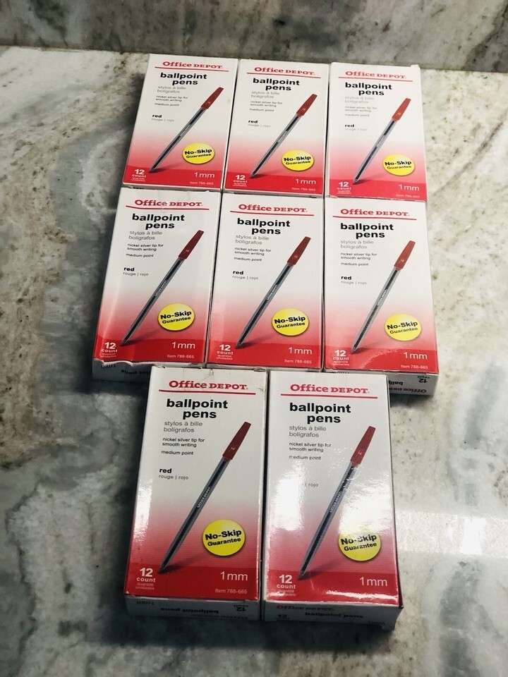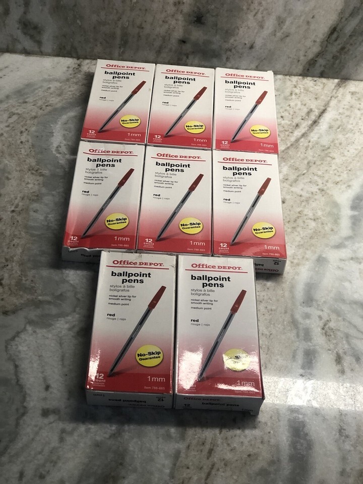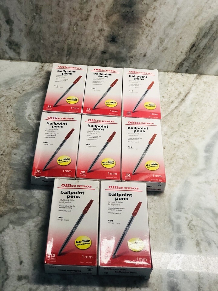 Office Depot-Lot Of 8 12ct 1mm Red/Rojo Ballpoint Pens/Boligrafos. ShipN24Hours