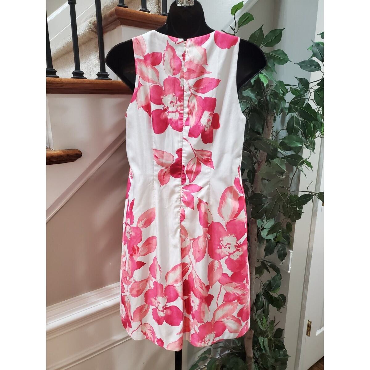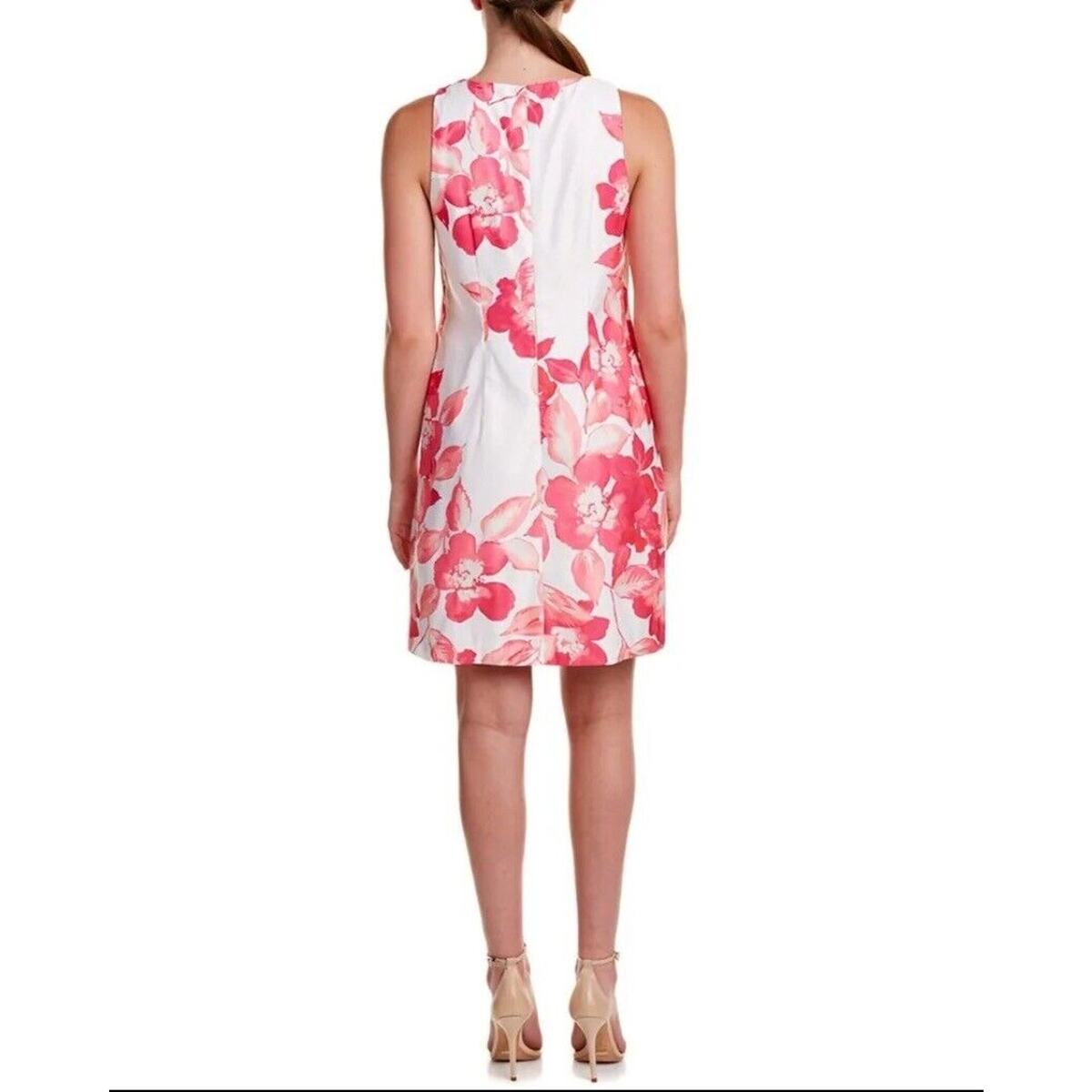 Eliza J White & Pink Floral Polyester Round Neck Sleeveless Knee Length Dress 2