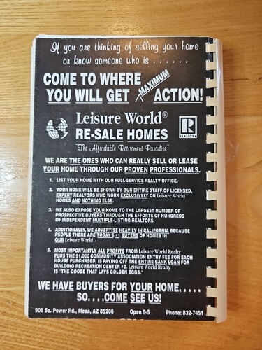 Vintage Leisure Worlds Favorite Recipes Book Second Helping Mesa Arizona