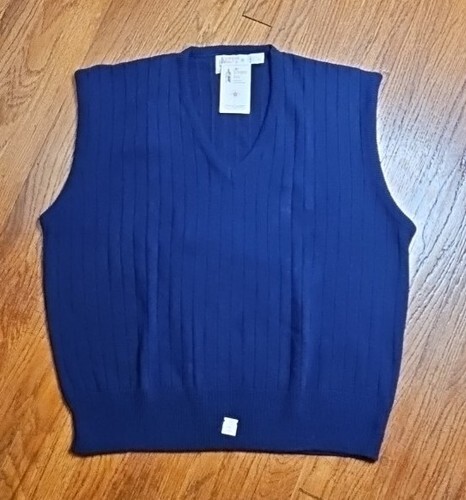 UP FOR SALE: Vintage London Fog Mens V-Neck Sweater Vest 2XL Big Navy Blue New With Tags USA