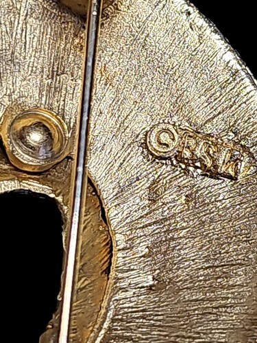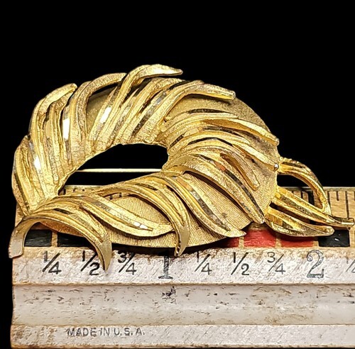 UP FOR SALE: Vintage BSK Swirled Feathered Brushed Gold Tone Statement Brooch Pin Estate