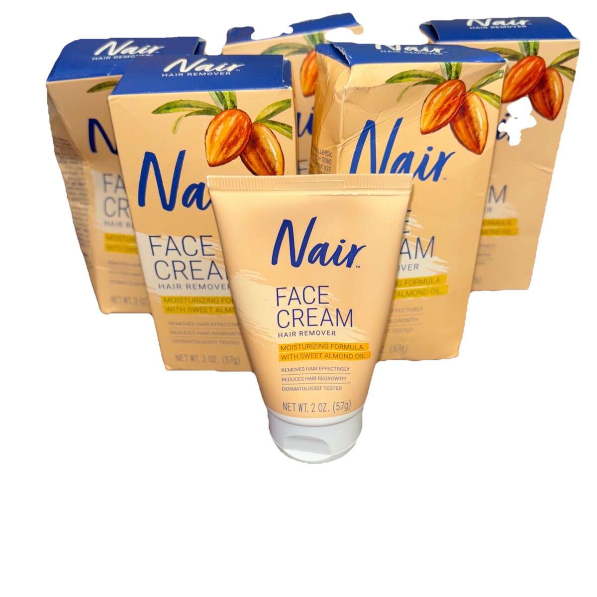 5Pk Nair Hair Remover Moisturizing Face Cream W/SweetAlmond Oil 2Oz Damaged READ