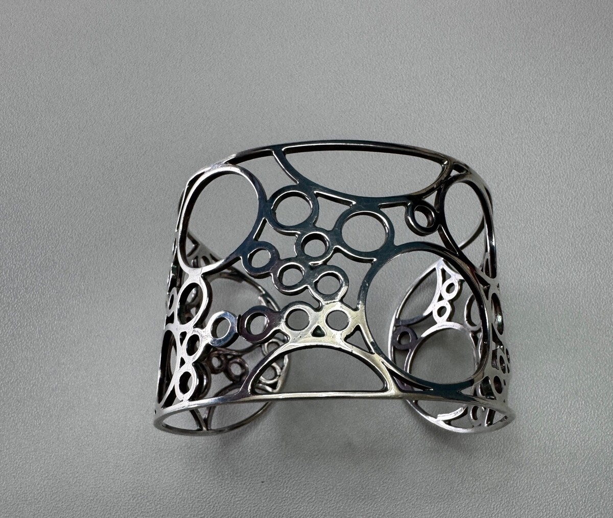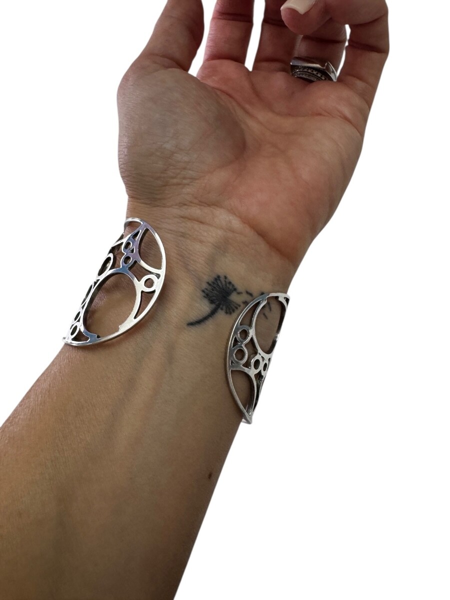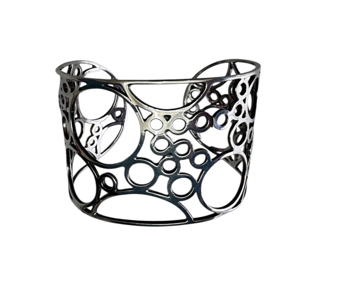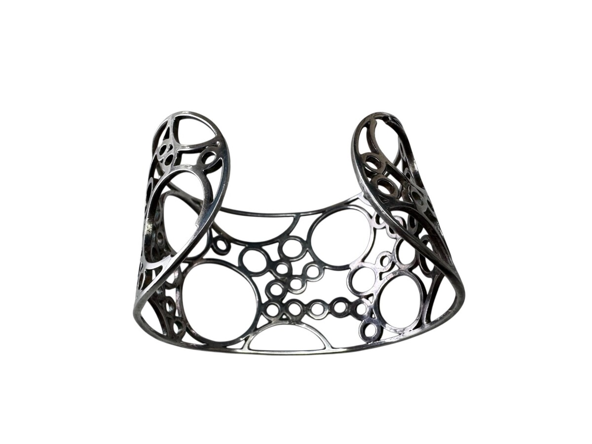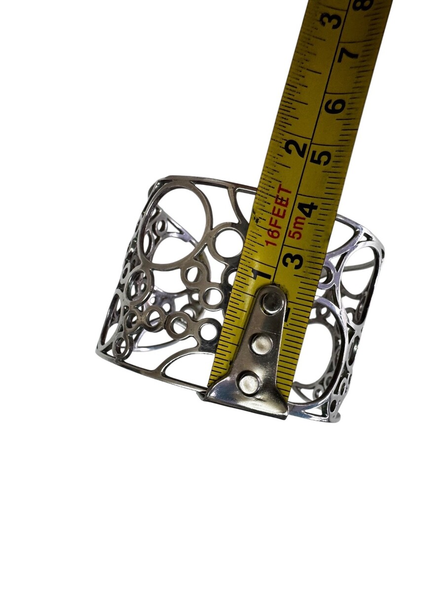 Artist Modernist Wide Sterling Silver Cuff Bracelet Cutout Circles Bubbles 27g
