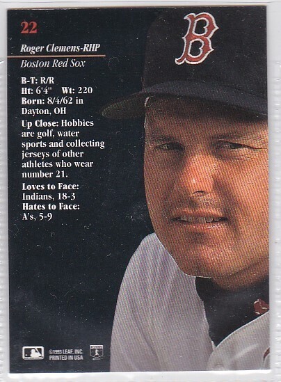 M) 1993 Leaf Studio MLB Baseball Trading Card - Roger Clemens #22