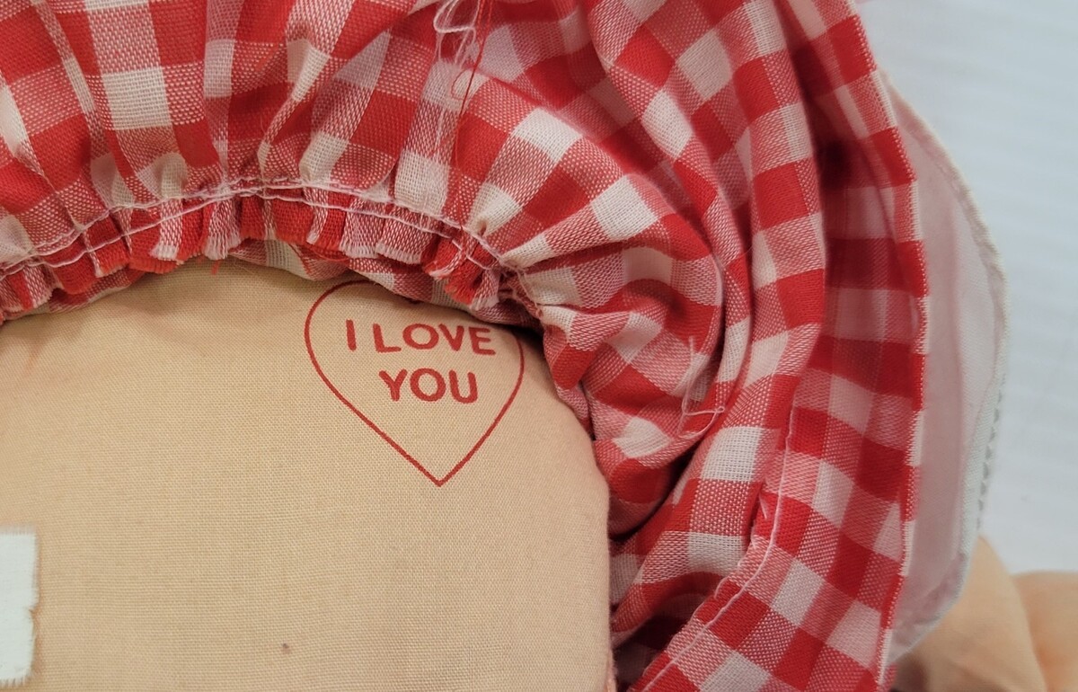 Doll is in vintage played-with condition with some possible signs of use and age along with possible display and storage marks. Hair yarn has some storage and age lint/dust..