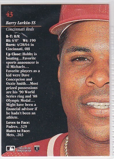 M) 1993 Leaf Studio MLB Baseball Trading Card - Barry Larkin #43