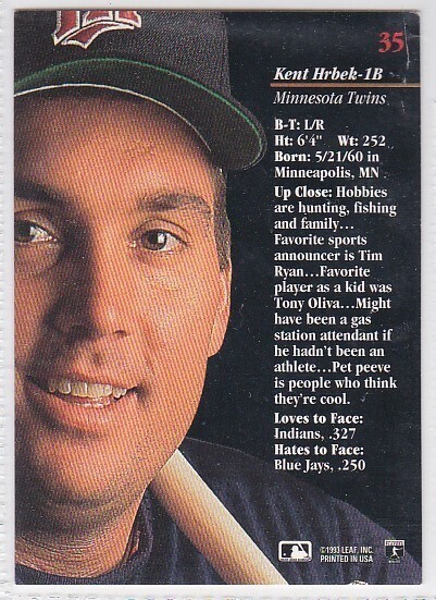 M) 1993 Leaf Studio MLB Baseball Trading Card - Kent Hrbek #35