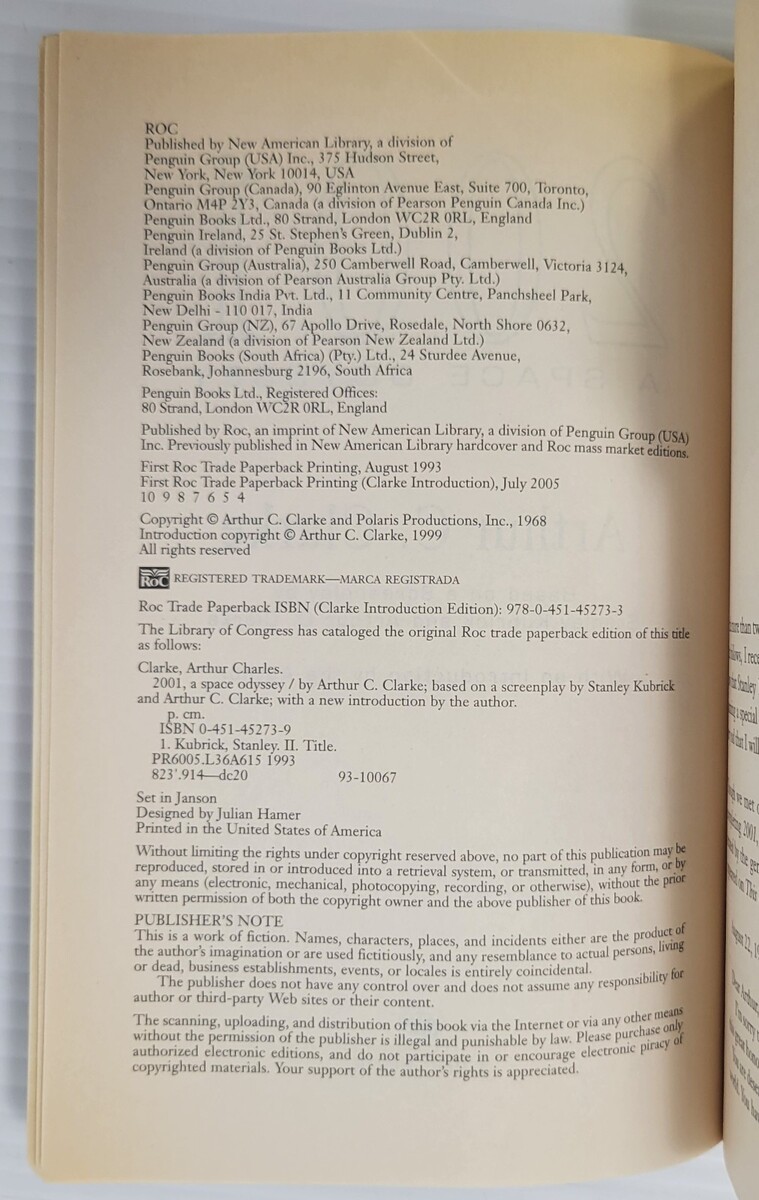 R) 2001: A Space Odyssey by Arthur C. Clarke (1993, A Roc Book, Paperback)
