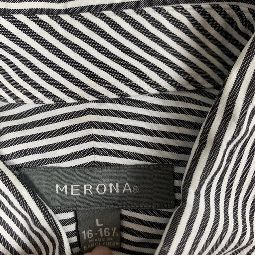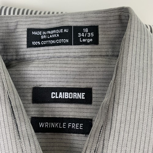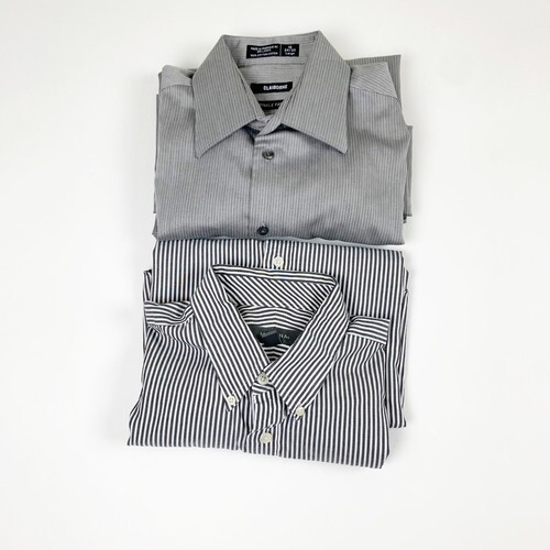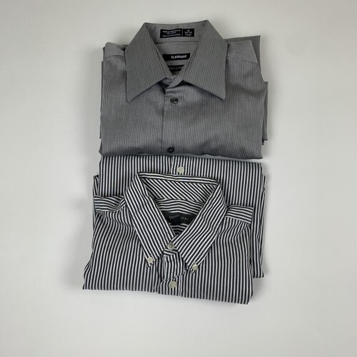 Lot-of-2 Merona Claiborne Long Sleeve Button Down Shirts Size Large 16 to 16.5 Gray Solid and Stripes