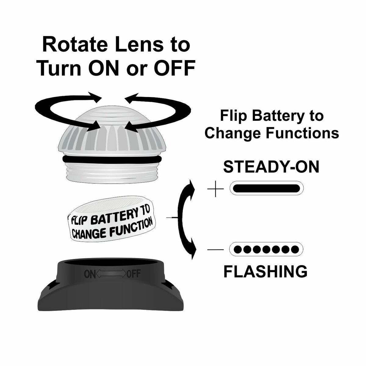 Thanks to patented Reverse Polarity Program Switching? technology, the function of the light can be changed between flashing and steady on modes by simply flipping the battery over.
