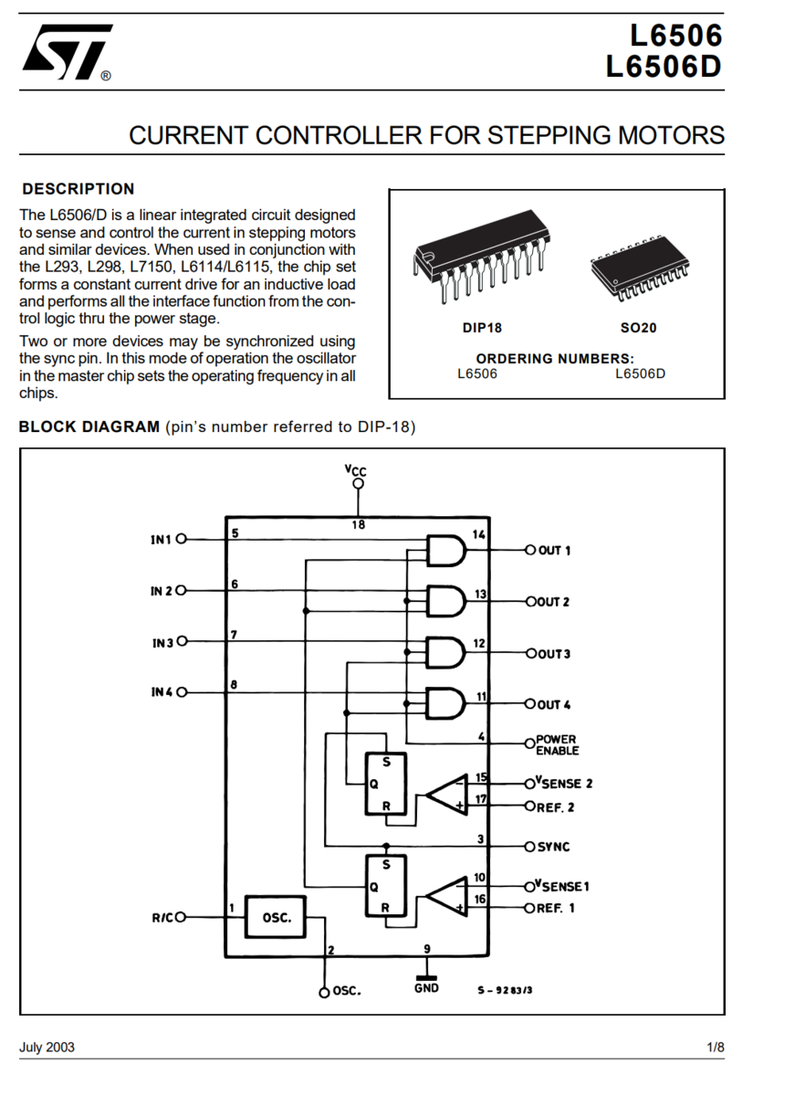 5X L6506D STMicroelectronics Current Controller for Stepping Motors 4.5V to 7V SOIC-20