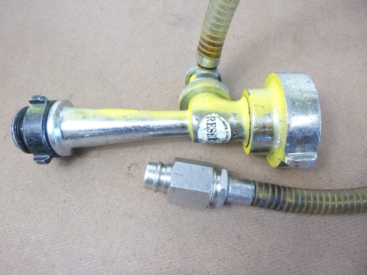 This was surplus from a city fire department. On the larger adapter is "2.50 AFY". I can't see clearly what is written on the adapter on the smaller side, but it looks to me like "United Fire Equip. Co. 2.1 X.11 X1.5 NH".