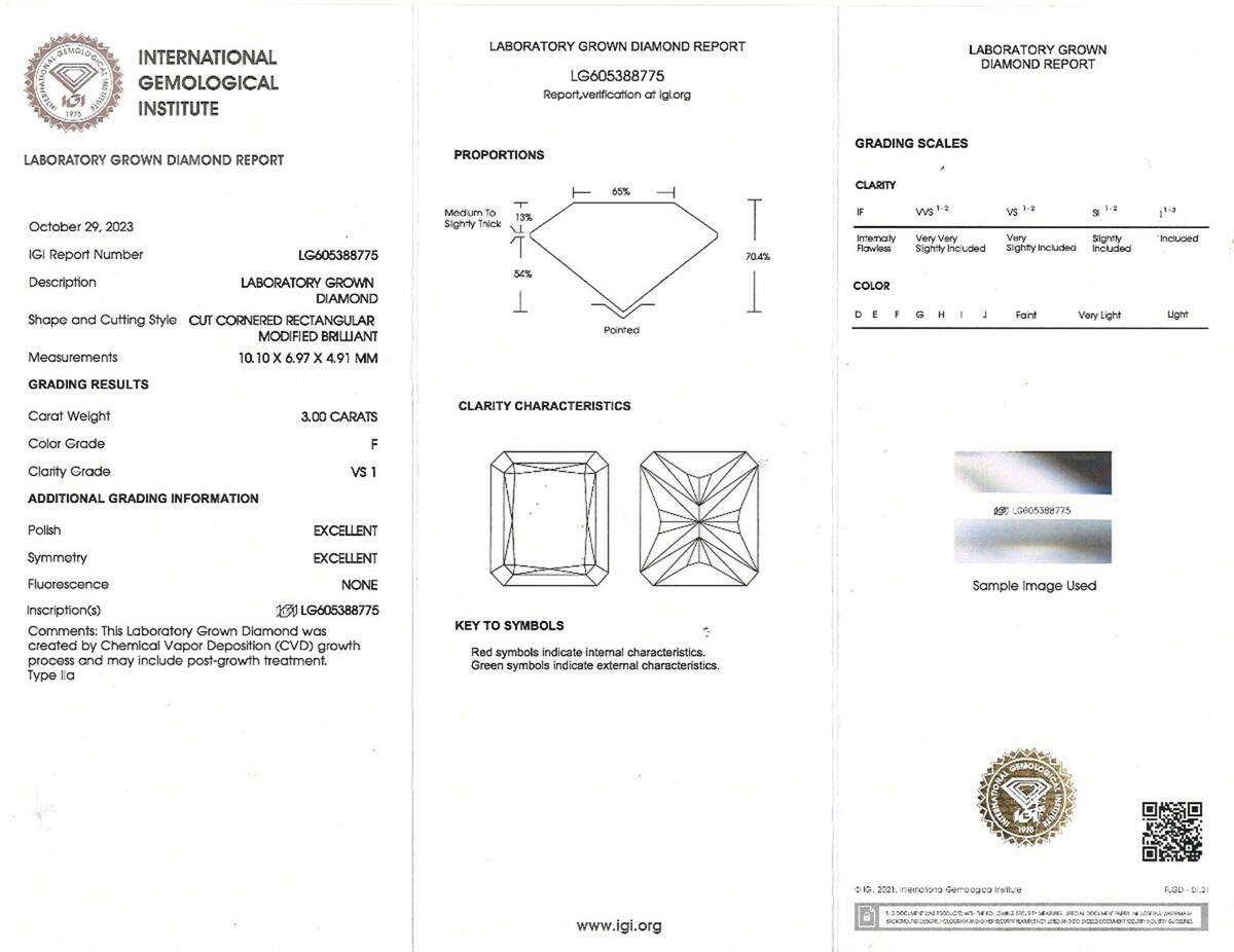 3-Stone IGI 3CT F-VS1 Lab Grown Radiant Cut and similar items