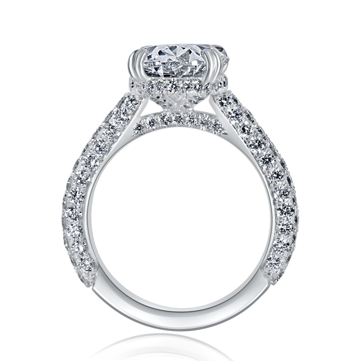 Anillo de diamantes cultivados en laboratorio de talla brillante ovalada de 5,02 quilates IGI, oro blanco de 14 k, 7,09 TCW