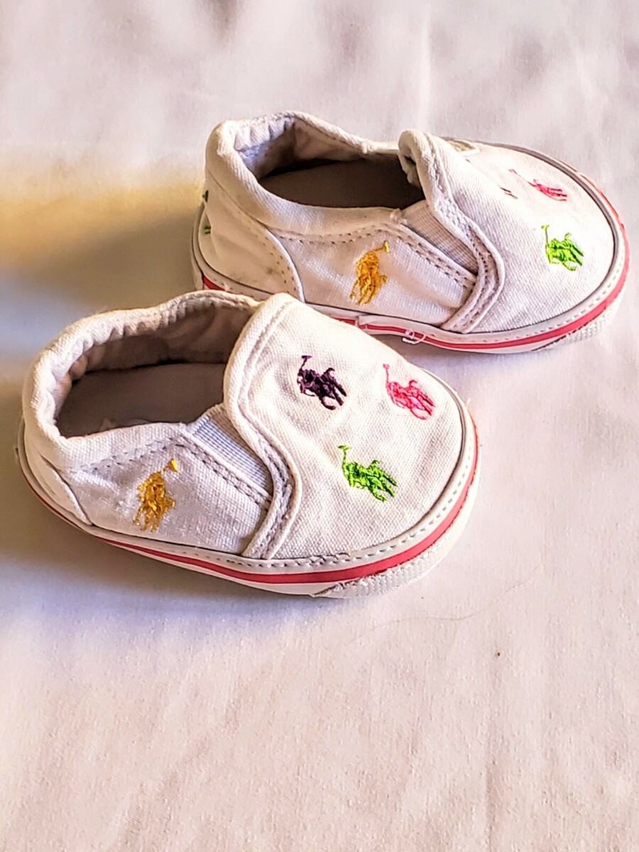 Ralph Lauren Baby Girl Pram Crib Shoes White Rainbow Pony Logo Embroidery 2 3-6