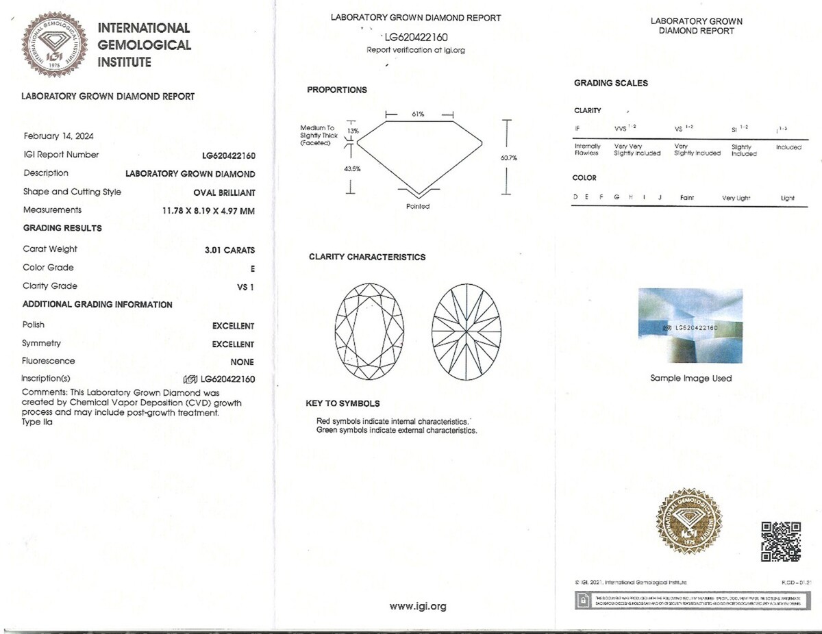 Igi 2.50 Karat Oval Brillantschliff Kunstdiamanten Grown Diamant Verlobungsring