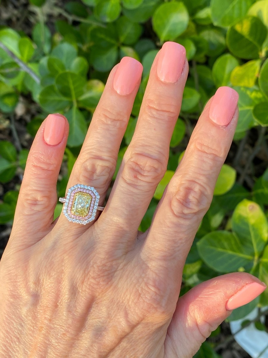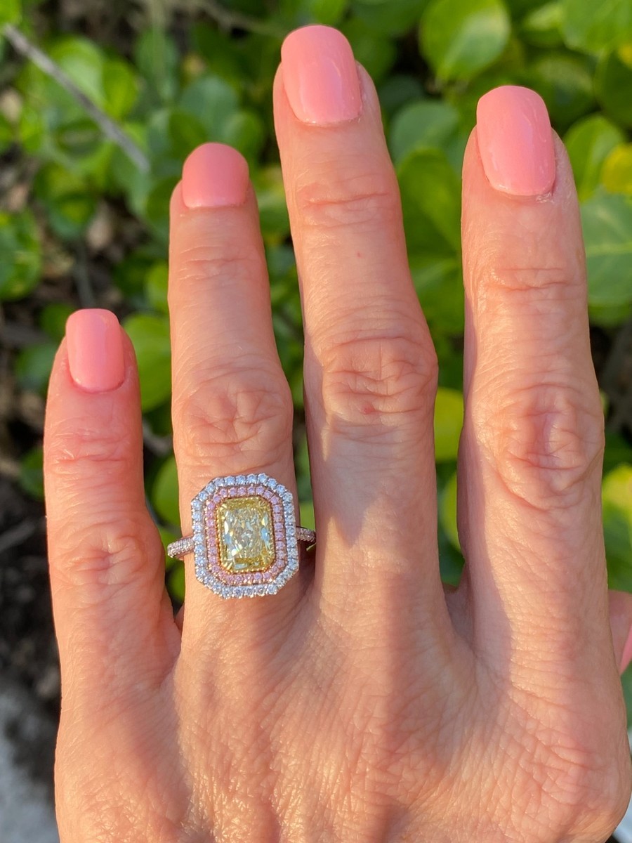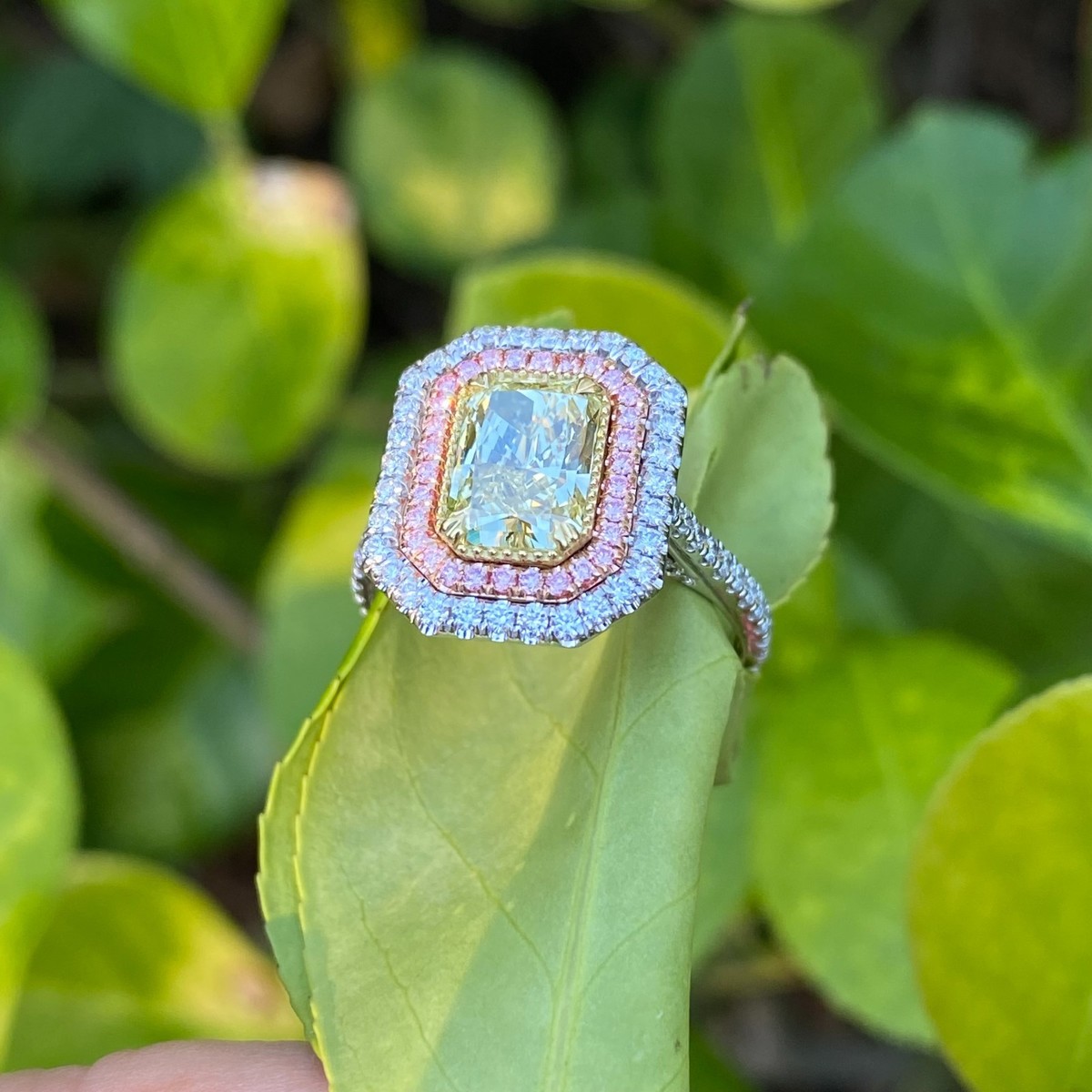 Igi 2.15 Carats Deguisement Vif Rose Radiant Labo Grown Bague Diamant 14k Deux
