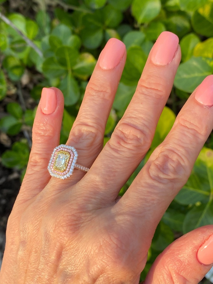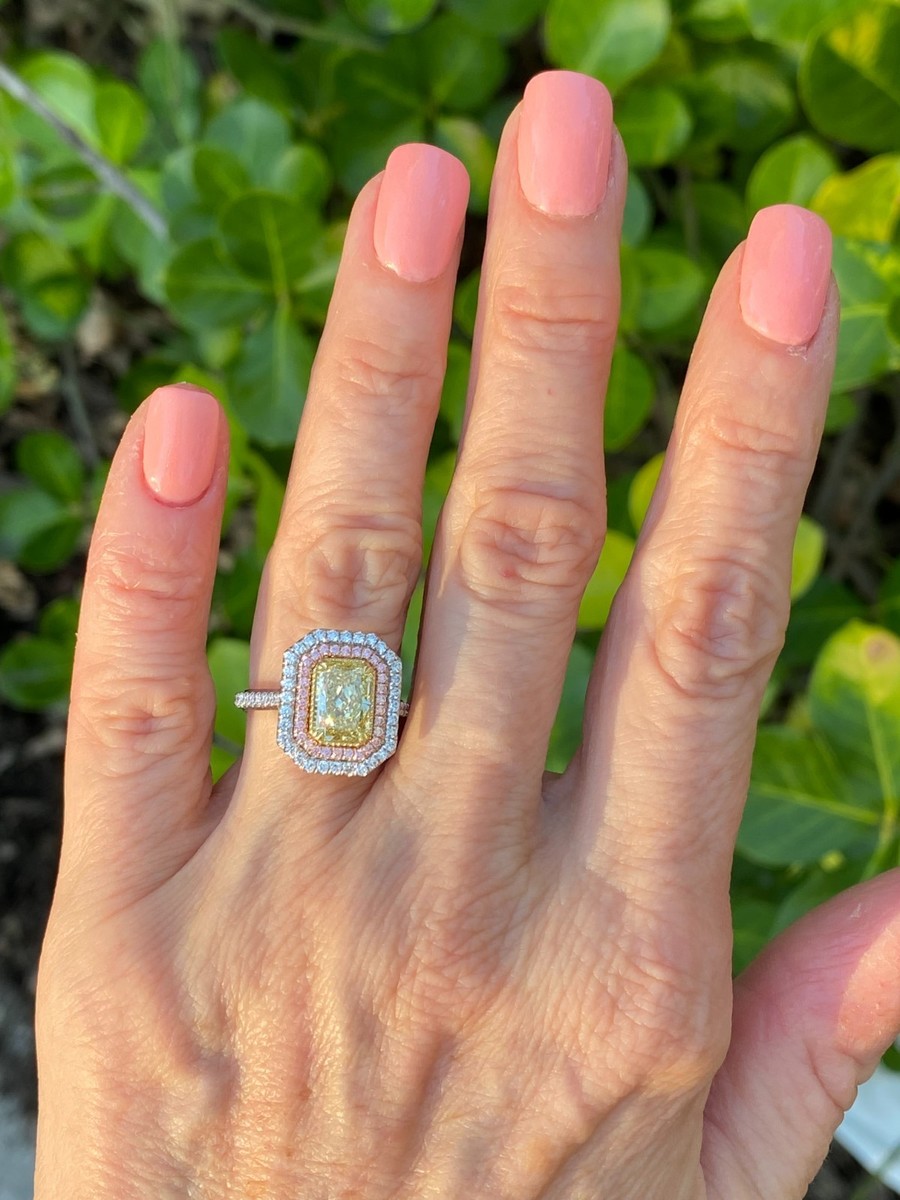 Igi 1.68 Cts (1.13) Radiant Deguisement Intense Jaune Labo Grown Bague Diamant