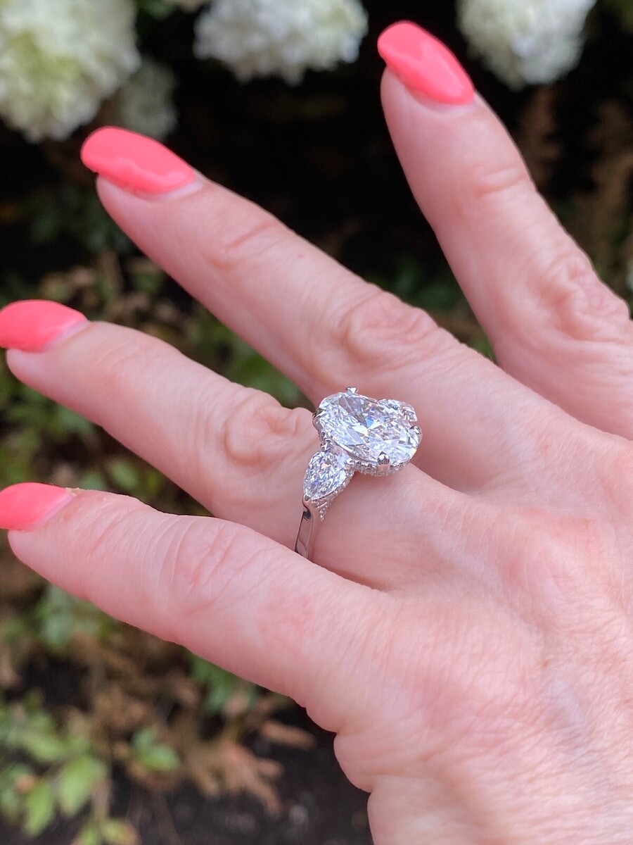 Ovale 4.08Ct E-VVS2 Igi Laboratrio Cresciuta Diamante Fidanzamento Anello 14k