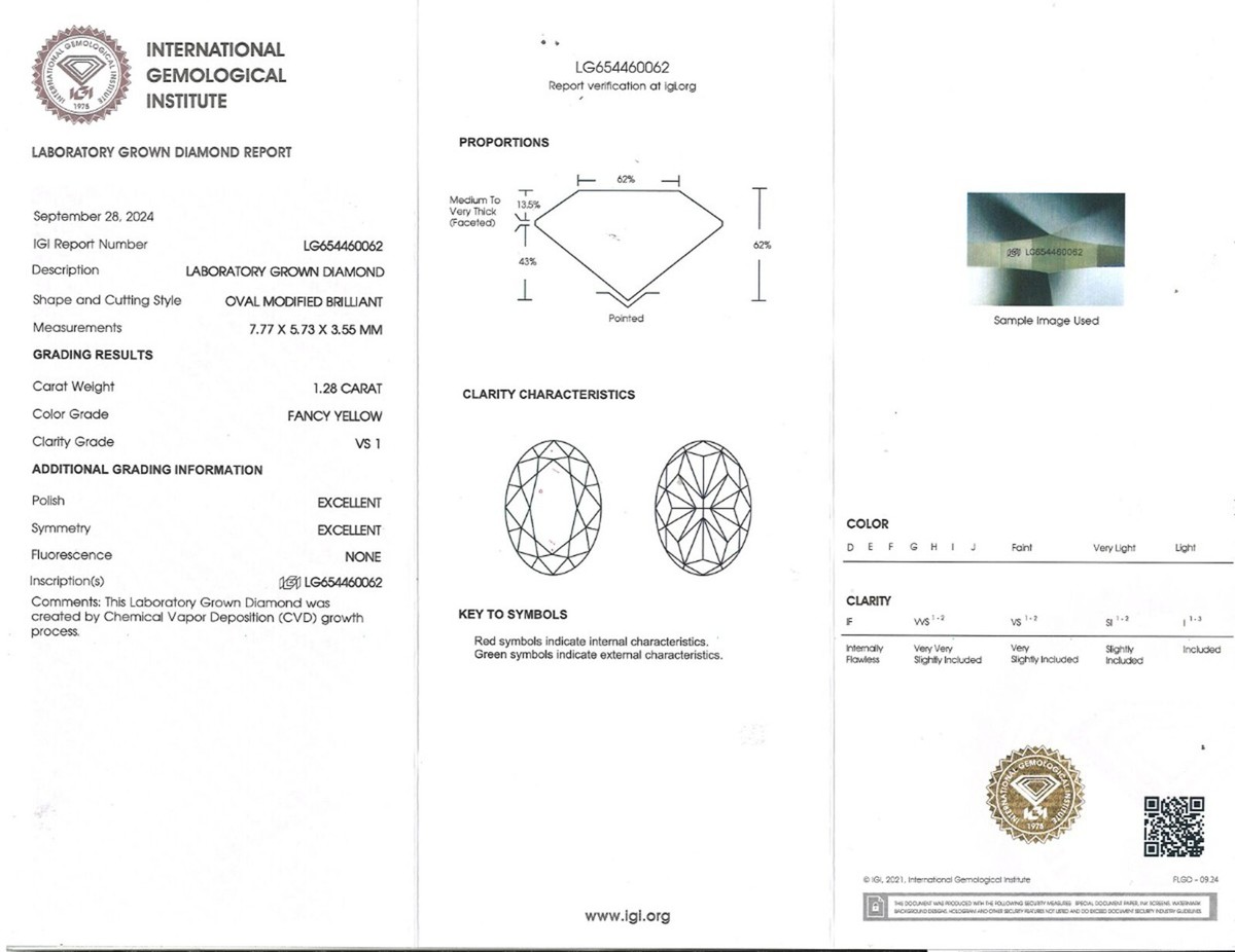 La bague est livree avec le numero de rapport LG654460062 de l'Institut international de gemmologie (IGI).