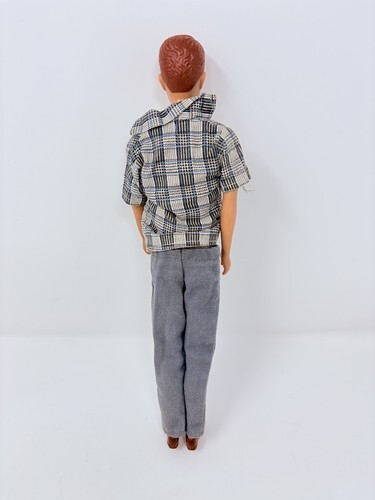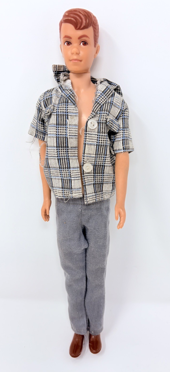 for a vintage Barbie Allan doll. He comes redressed as shown. His shirt fastener is torn off.