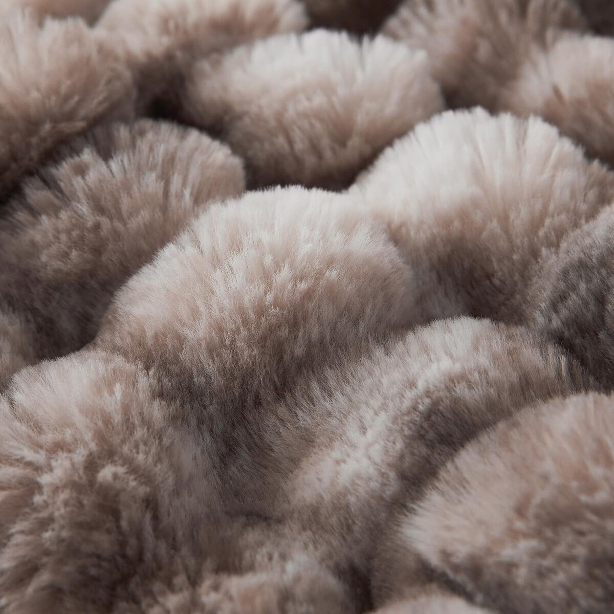 Faux Rabbit Fur Plush Throw Blanket Brown Cream Quilted 50x60 Luxe Home Decor
