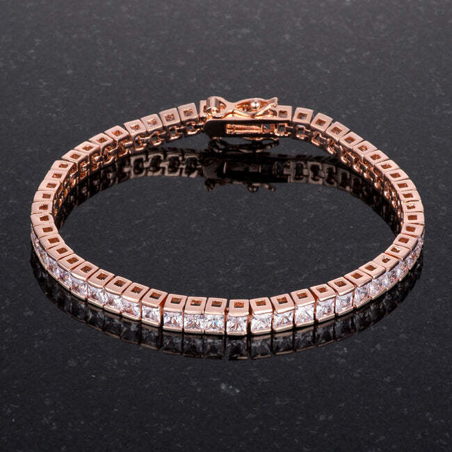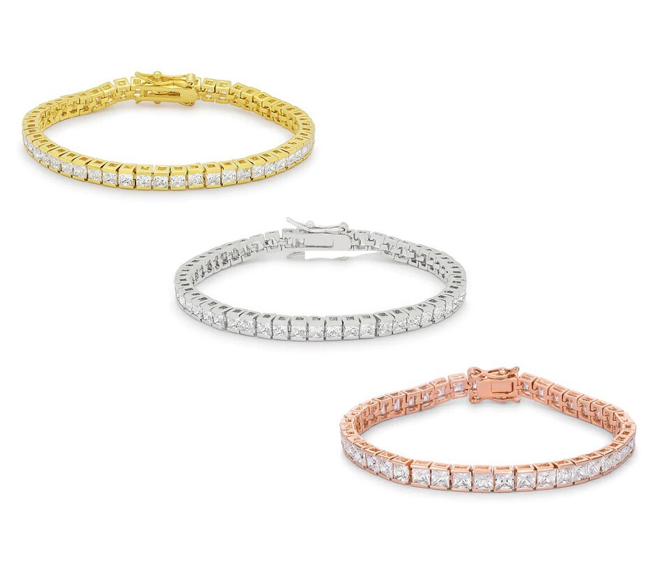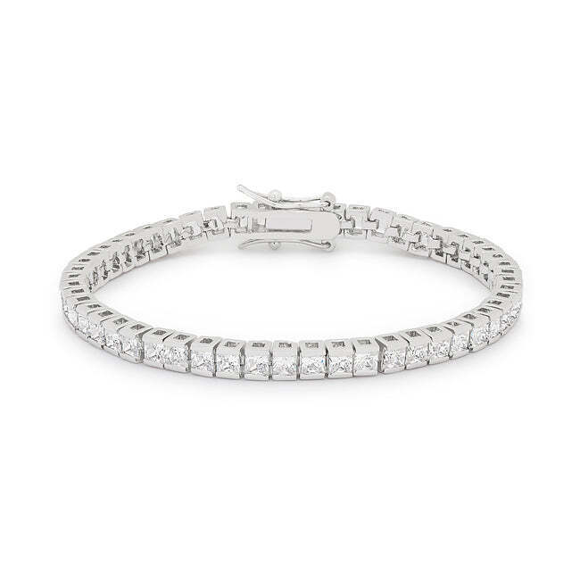Silvertone Rhodium or Gold Plated Brass 3mm Square CZ 7" Lades Tennis Bracelet