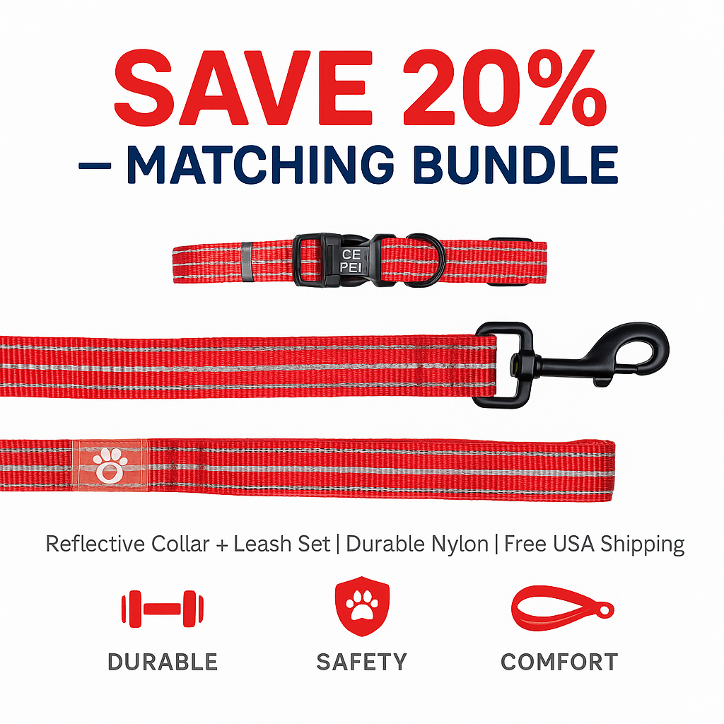 GF PET Reflective Collar + EEZY-6 Leash Set – High-Visibility Red (XS–L-Wide)