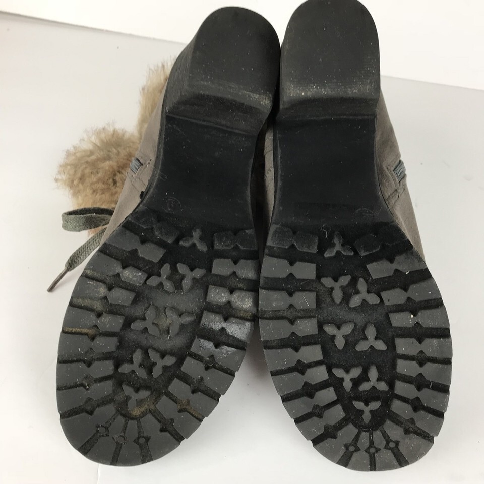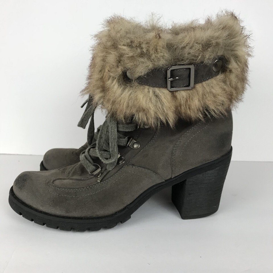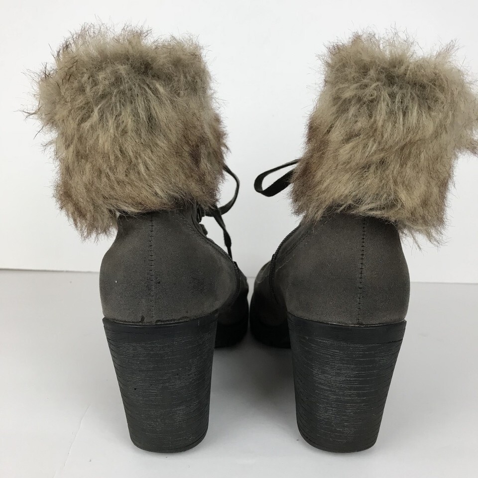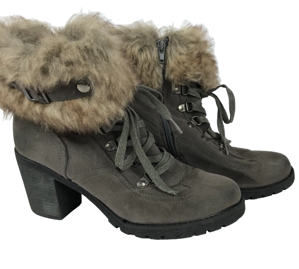 Nature Breeze Boots Size 9 Gray Block Heel Side Zip Buckle Faux Fur Top Lace Up