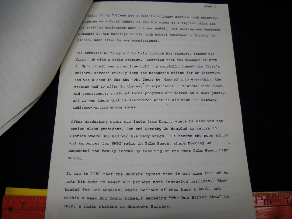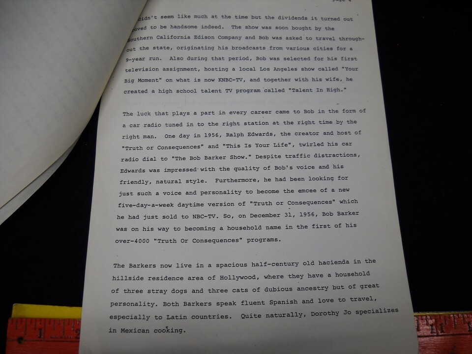 8x10 Glossy Publicity Photo Signed Bob Barker w/5 page letter Price Productions