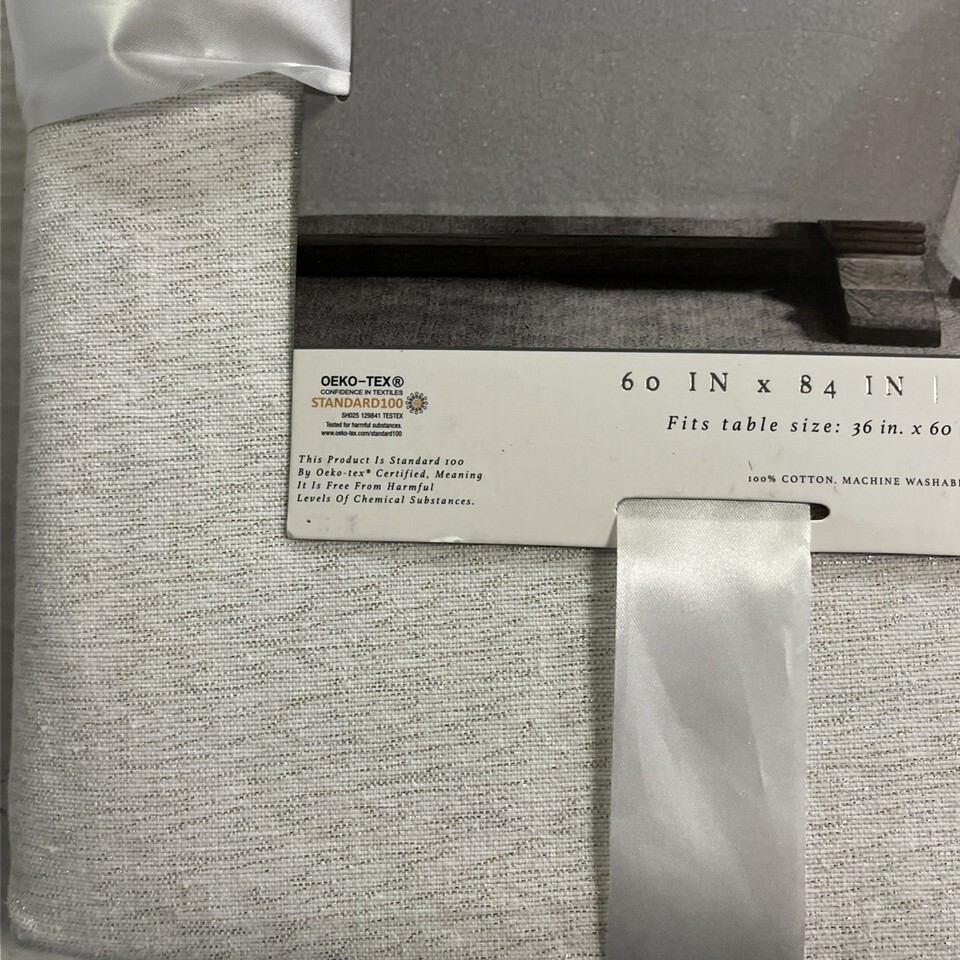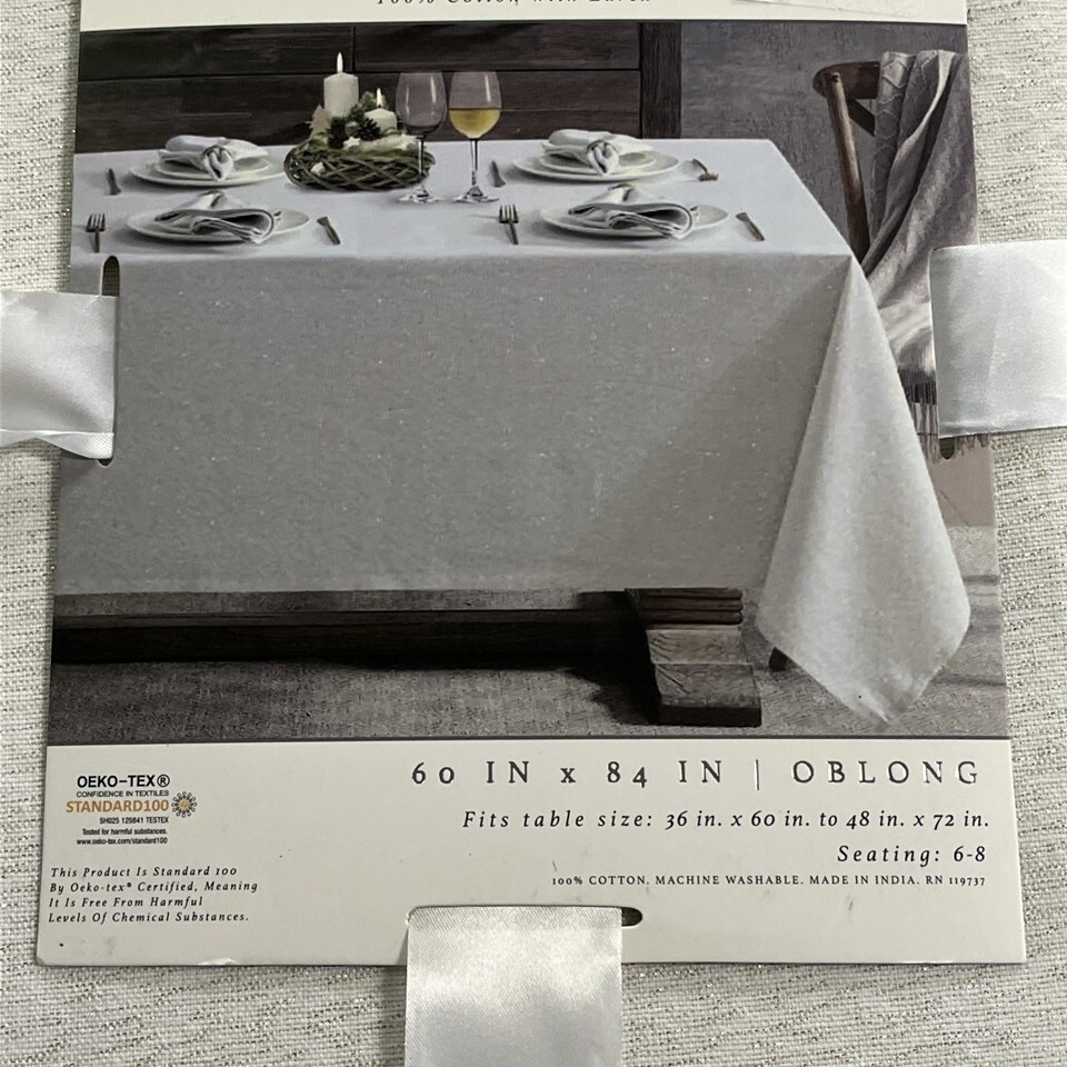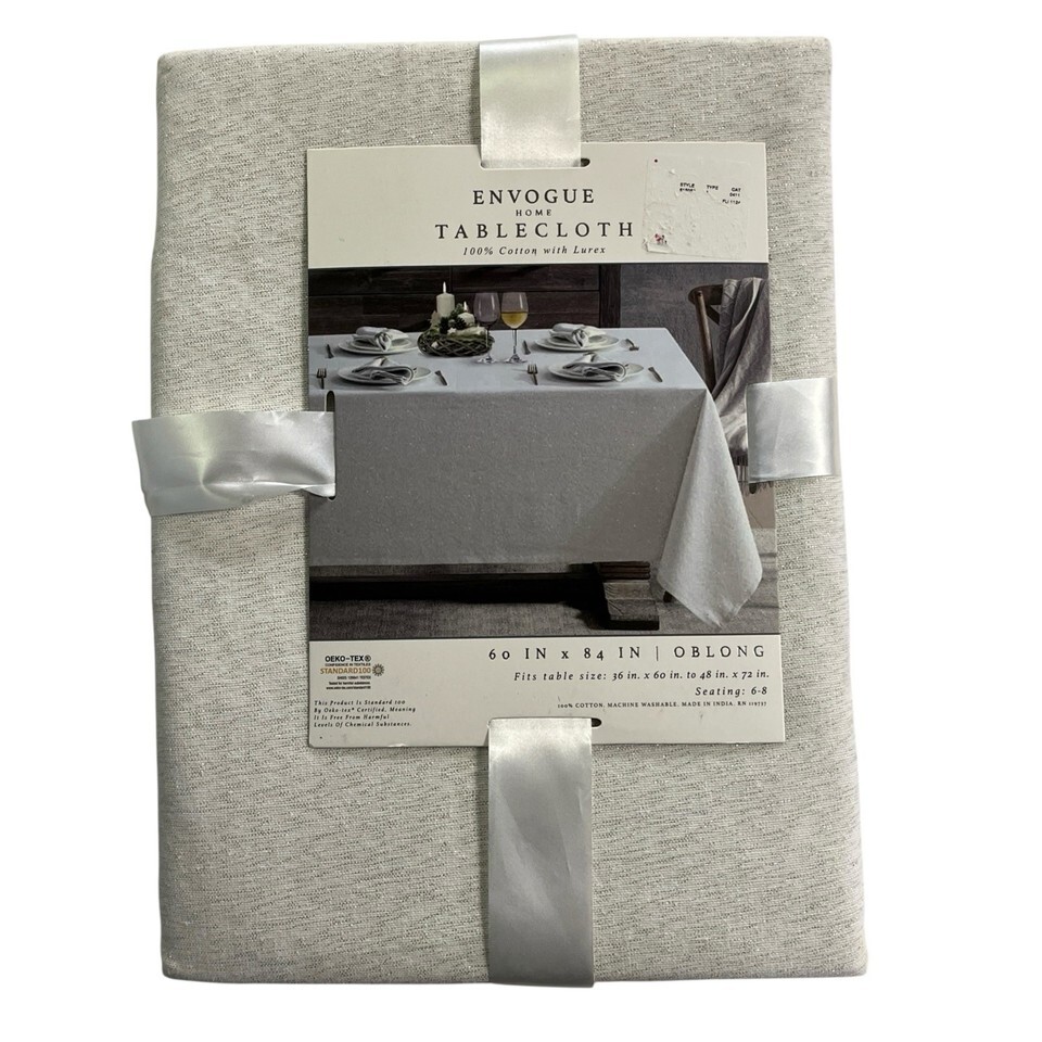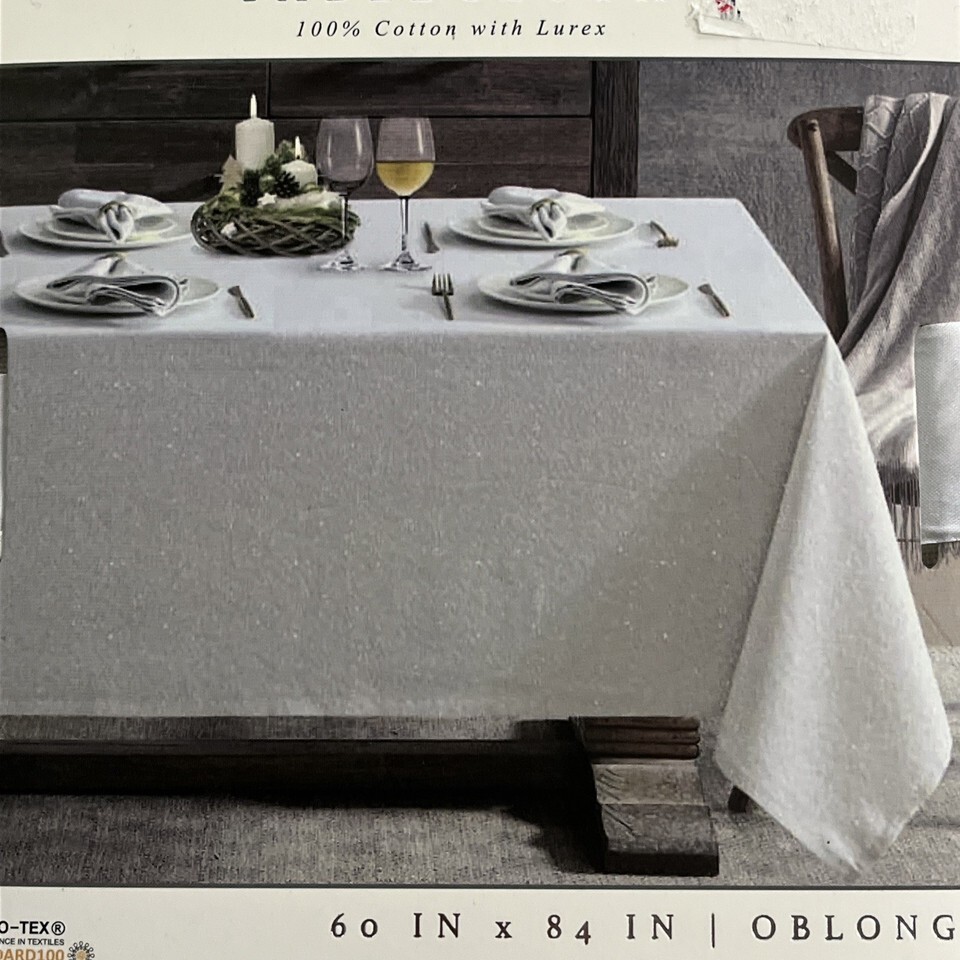 Envogue Tablecloth White Cotton Metallic Threading Formal Holiday Oblong 60x84